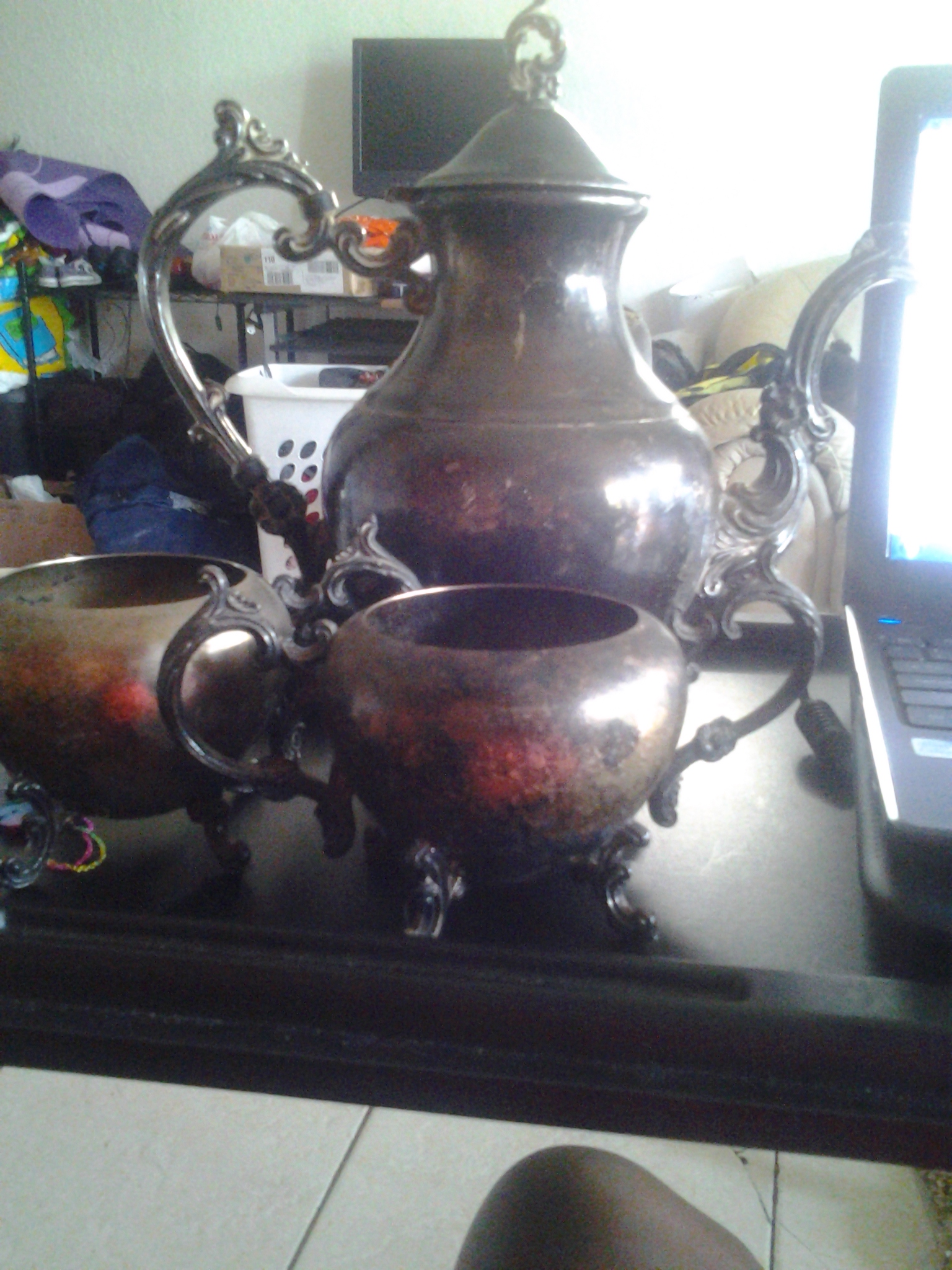 fb rogers coffee set marked 1960 on all three pieces. pretty old and damaged just want to know what itcost. got it from my grandmother.