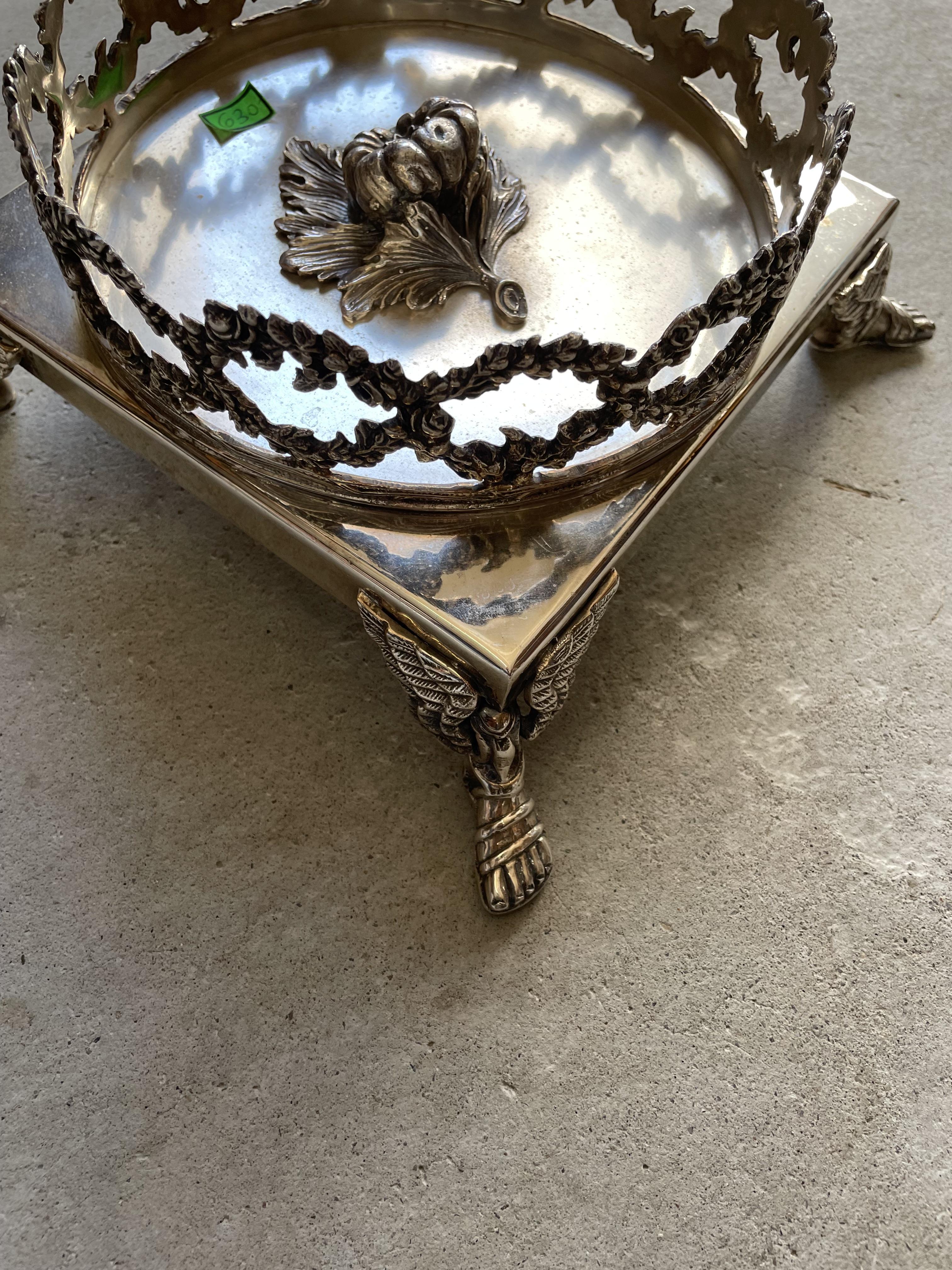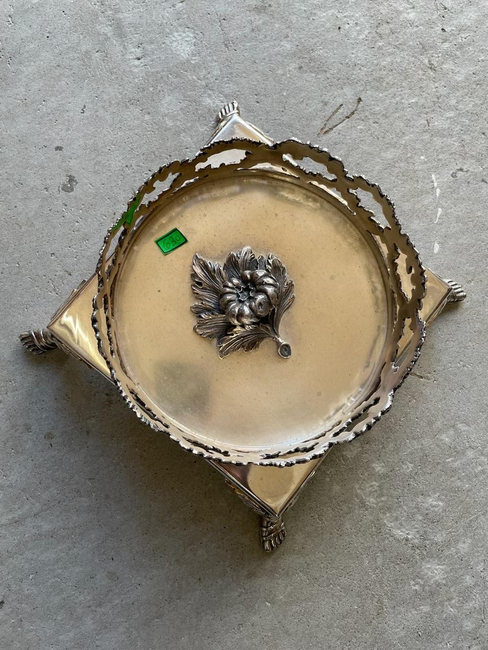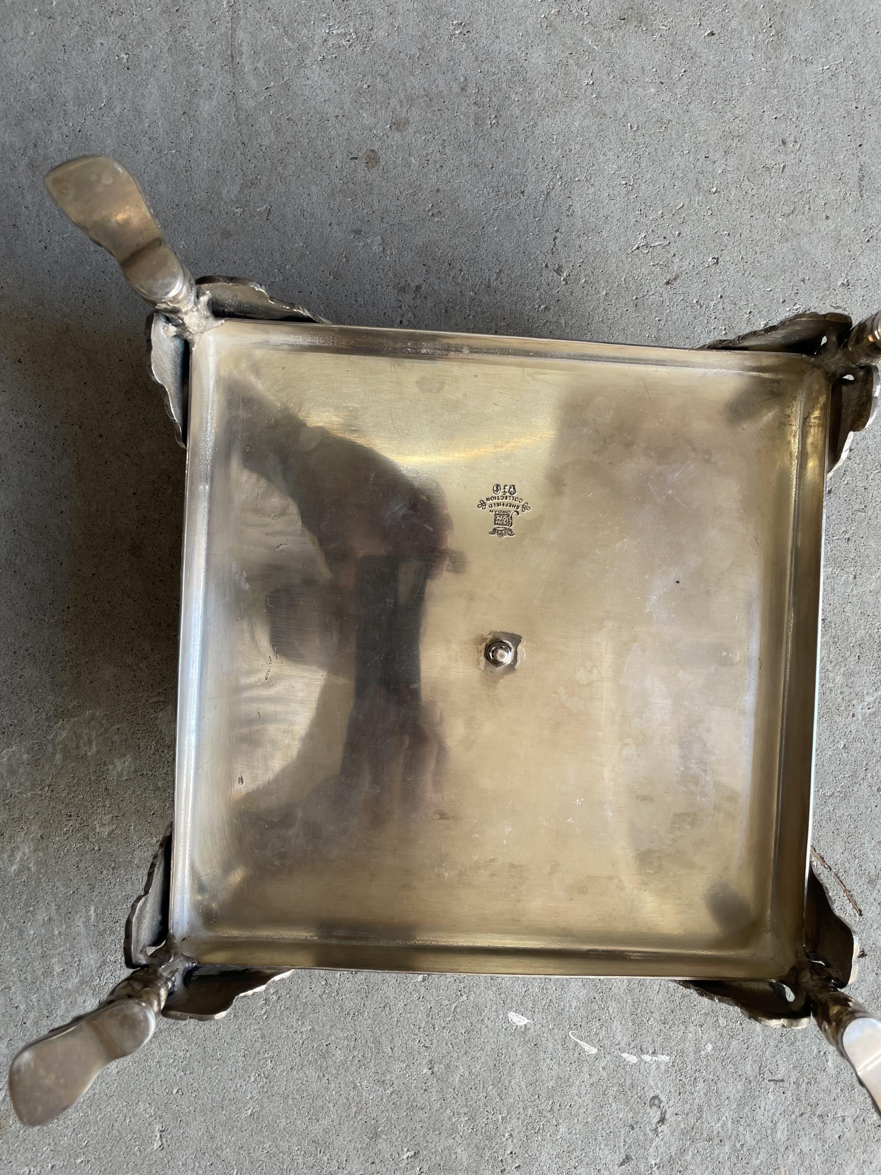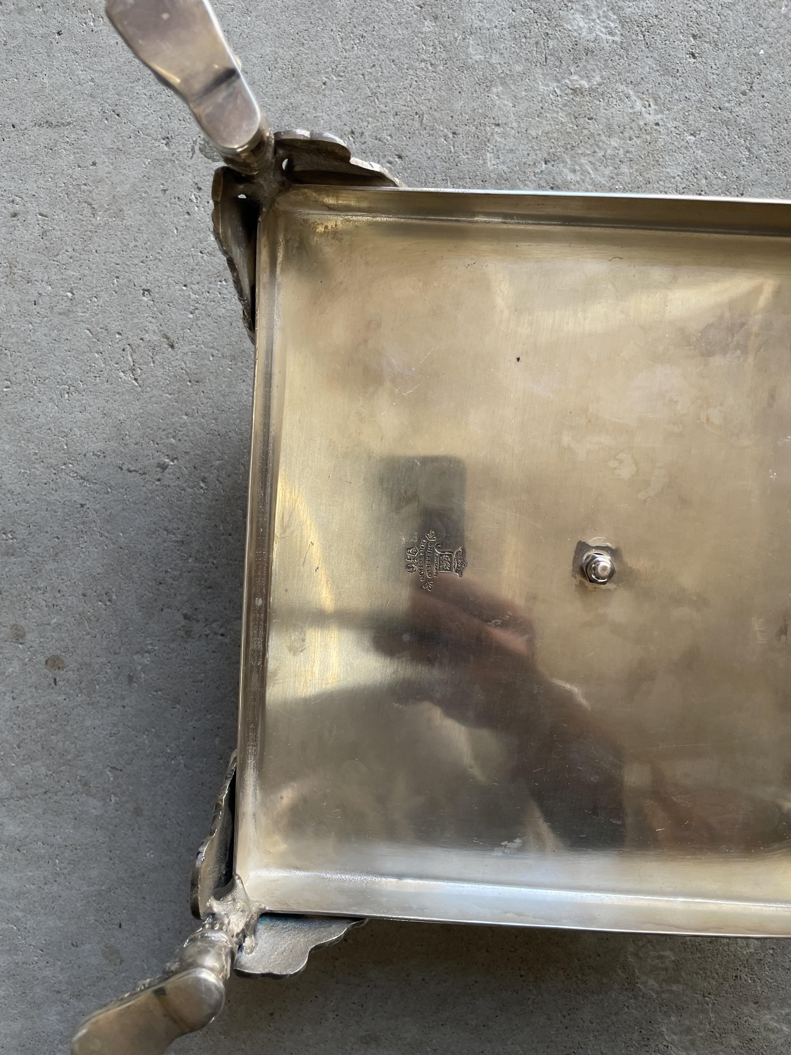 I don't know what it is and I do not see a silver stamp marking. Is it a tray but it has the raised flowers in center. I do not know where it came from. Someone donated it to our spiritual center. It is marked Jordan Sheffield Collection. I have searched for hours online and can not find anything similar.
