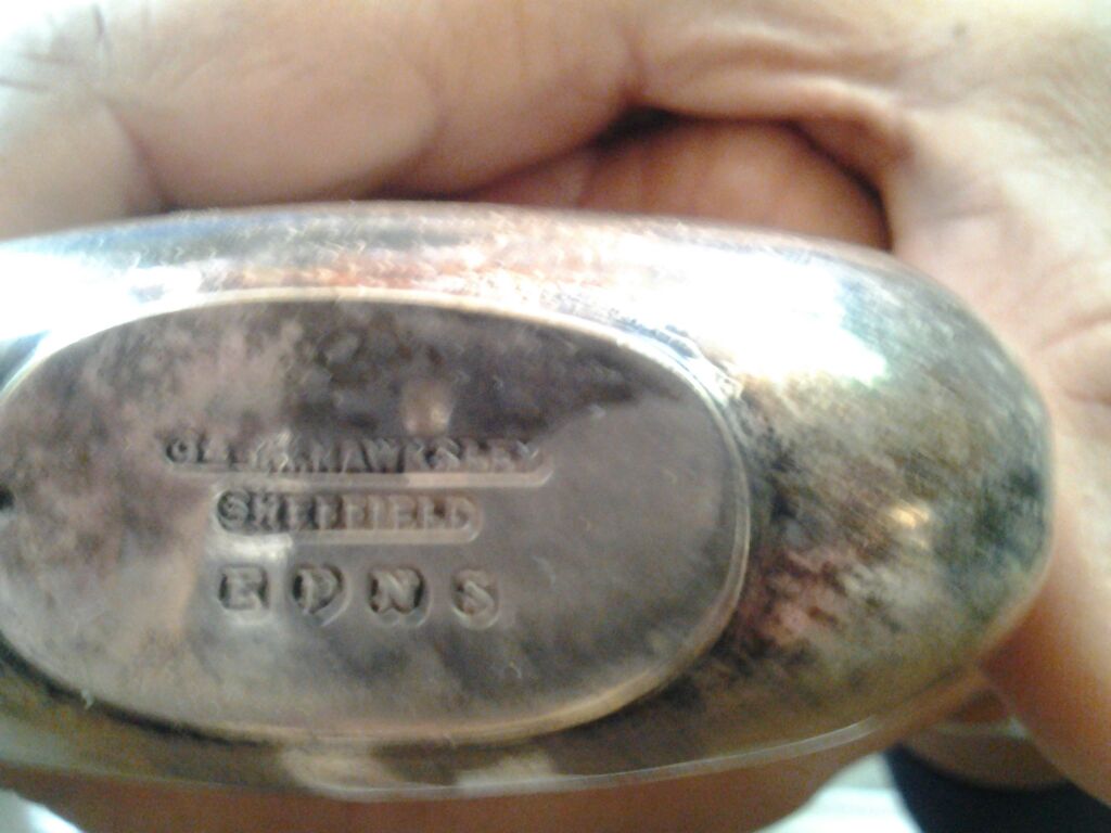Hawksley Sheffield silver flask, missing cap