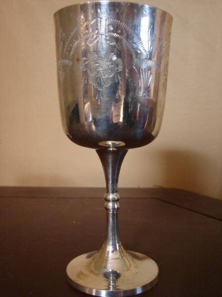 Sorry to tell you, the goblet is silver plated, "EPN" stands for " Electro Plated Nickle". All English sterling silver is stamped with a series of Hall marks to indicate the year, maker, city etc.