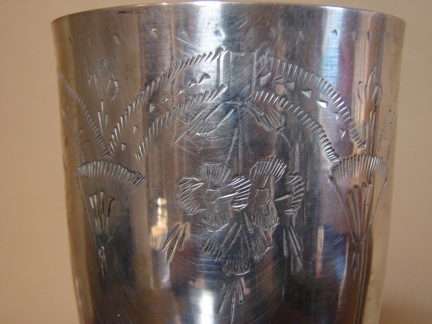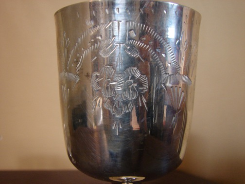 Bought at estate auction in London 1970s, hand stamped, handmade goblets, each slightly different dimensions but close to same, only one in set of 13 had artist's initials on lower rim