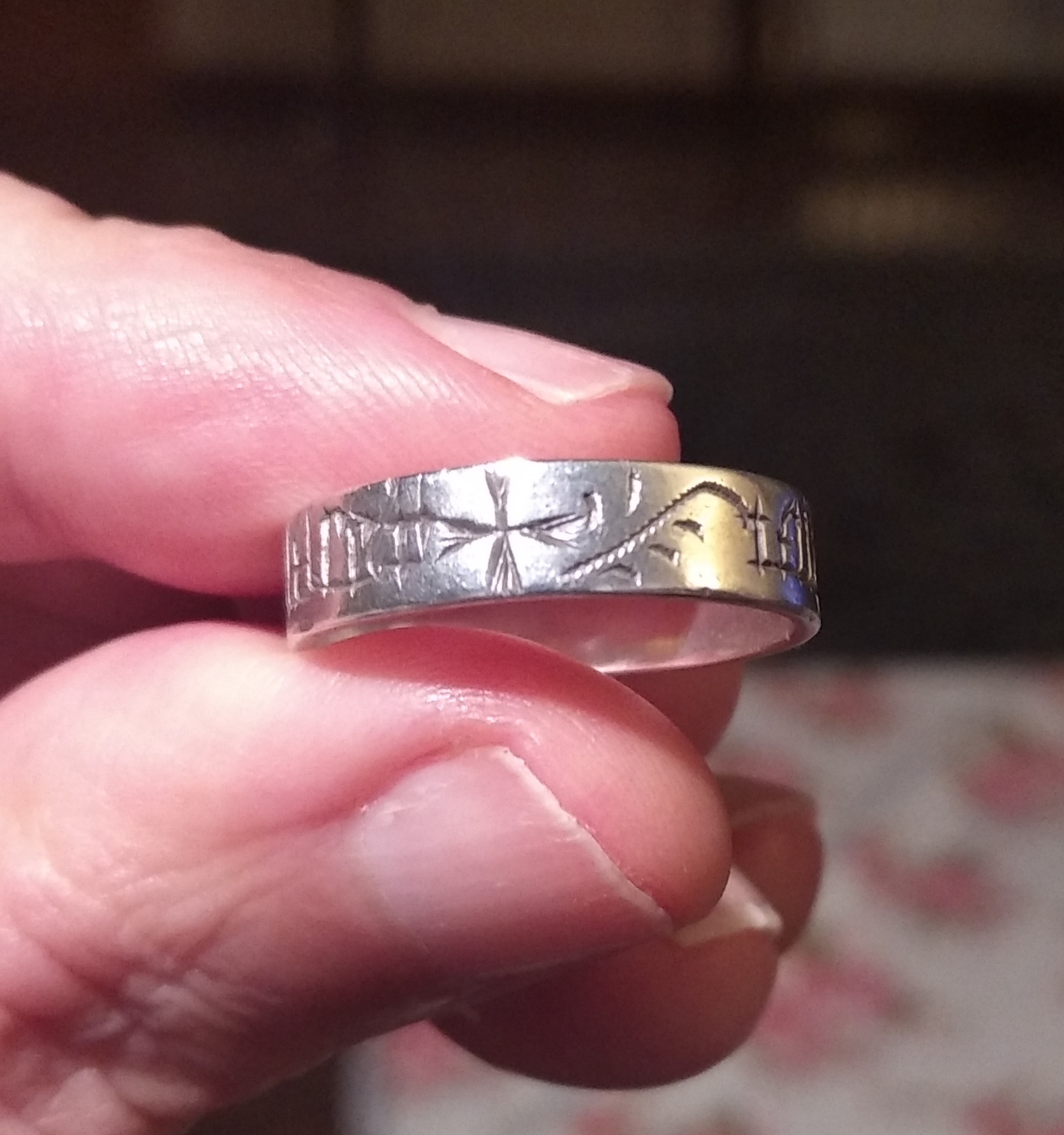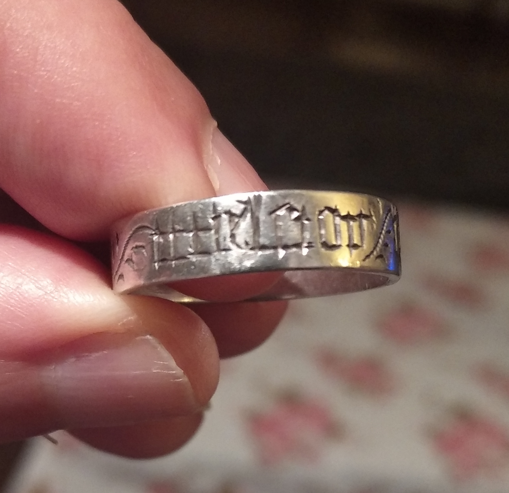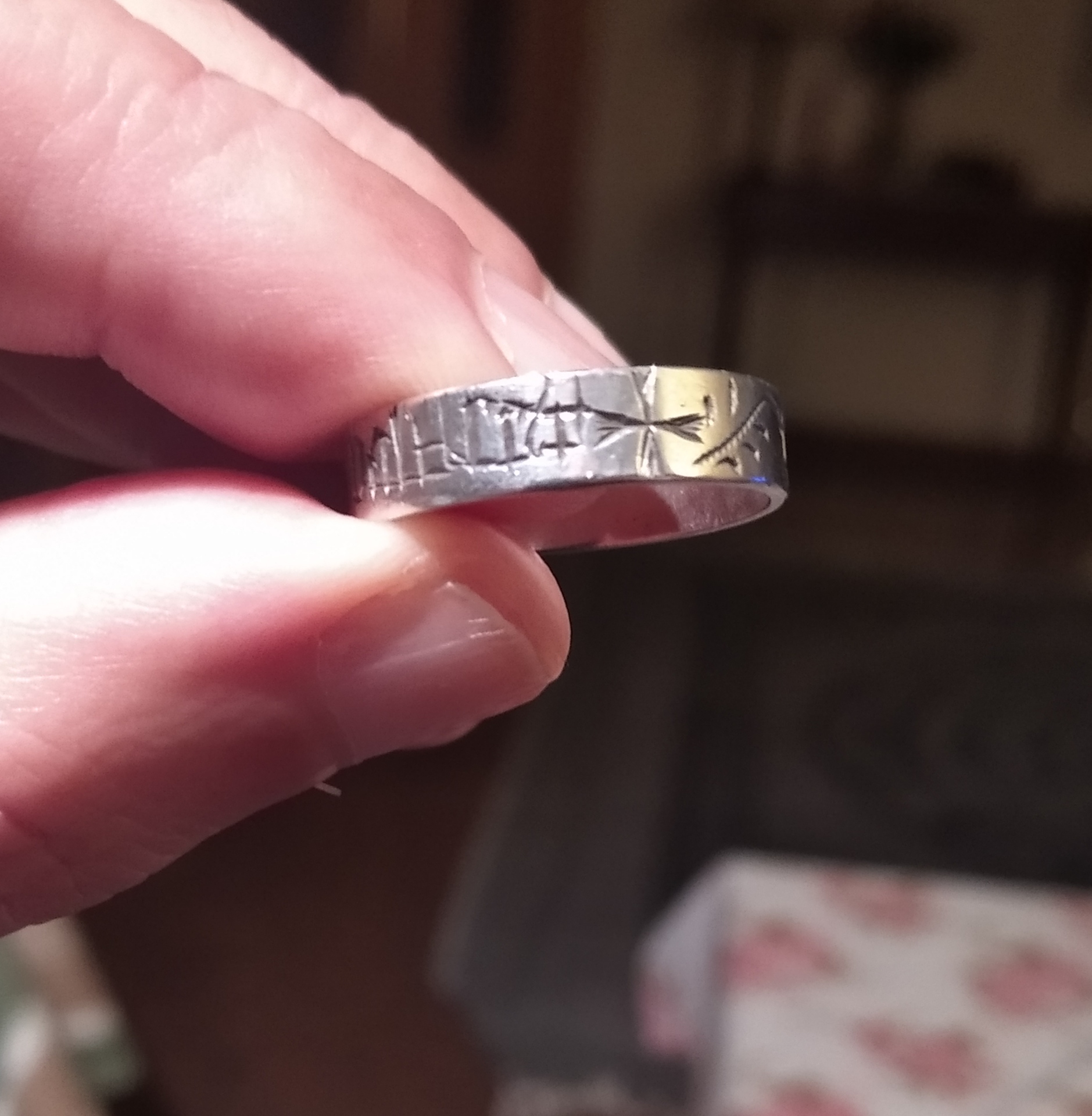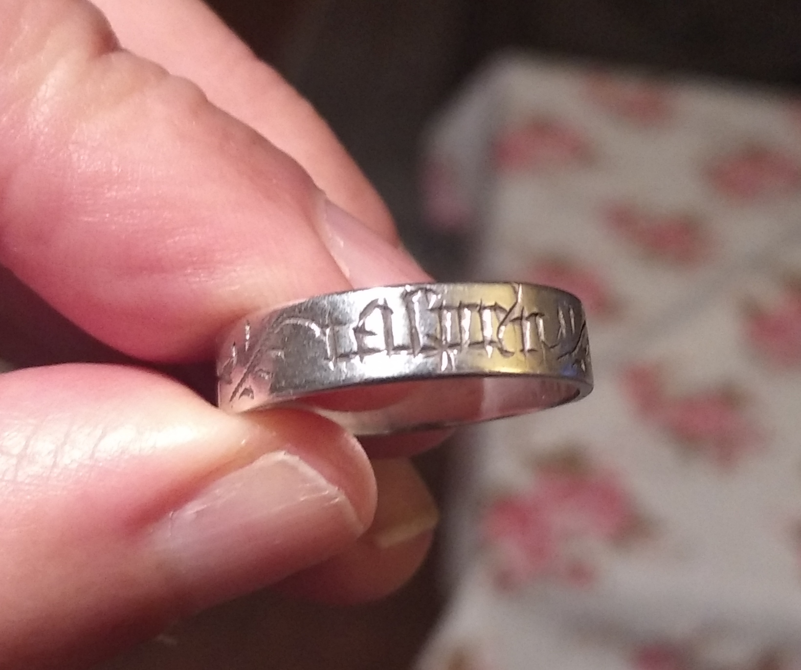The ring was been broken to adjust to a bigger finger and repaired later. (The fracture is between the M and E of MELSIOR).