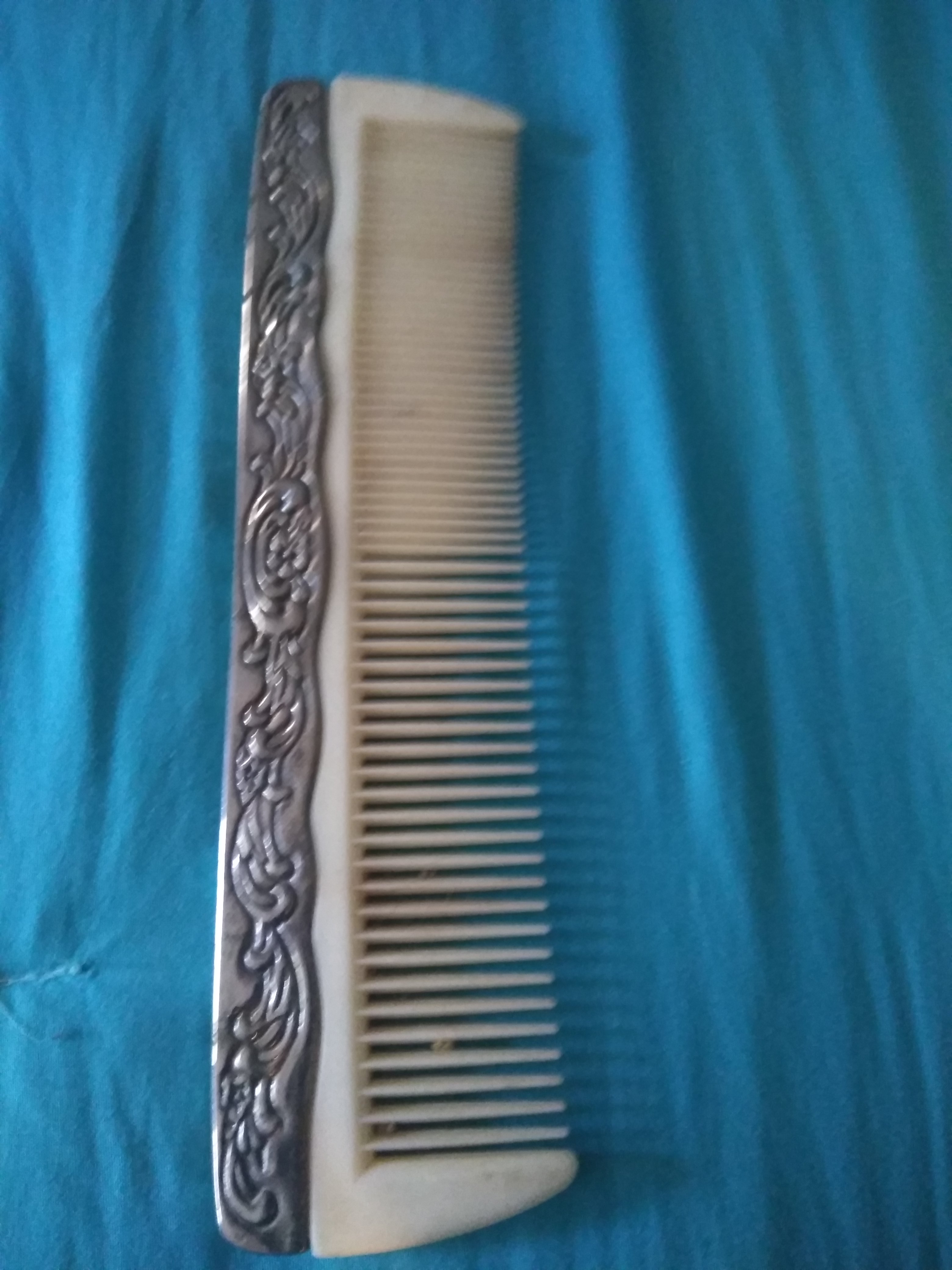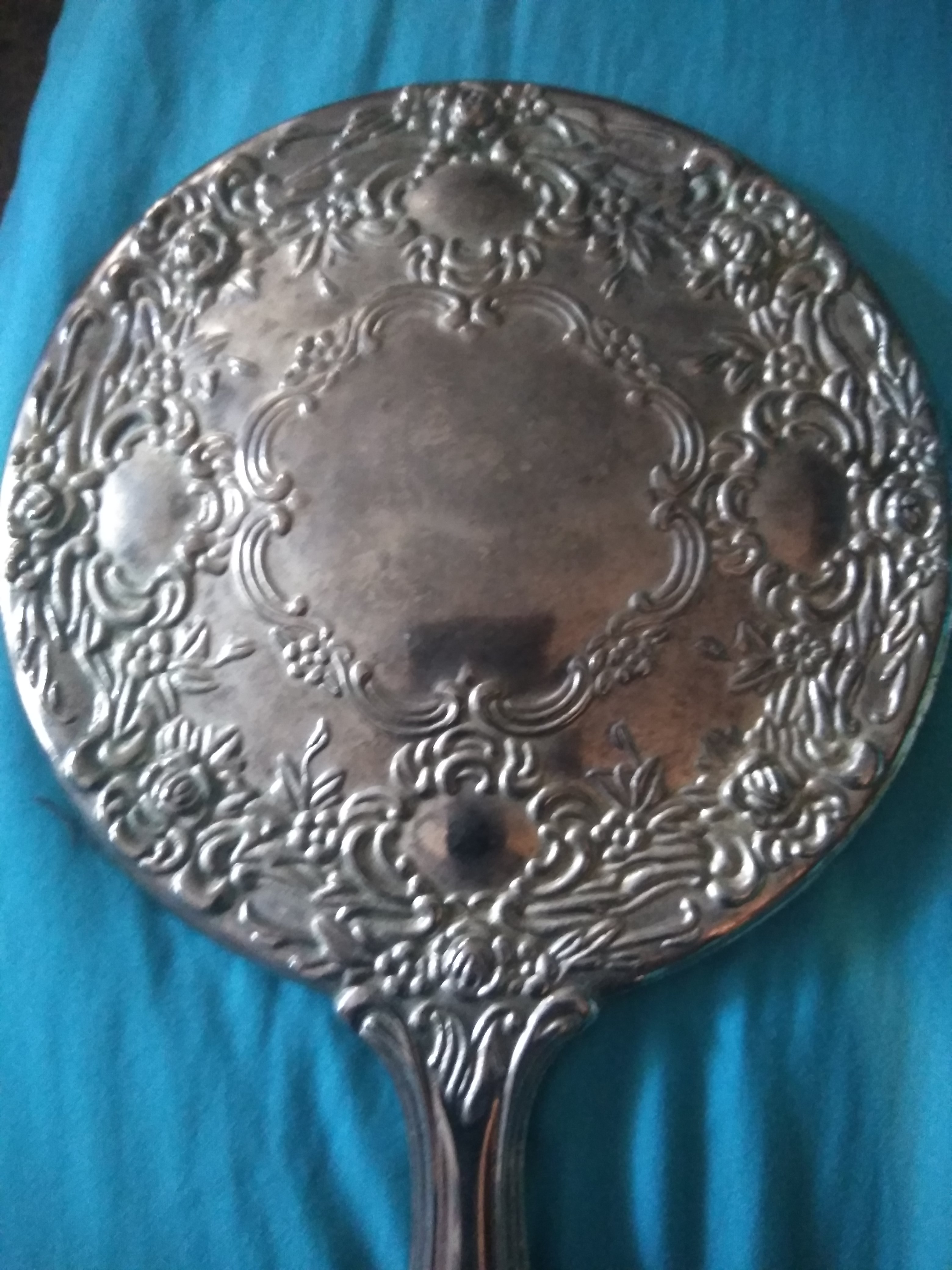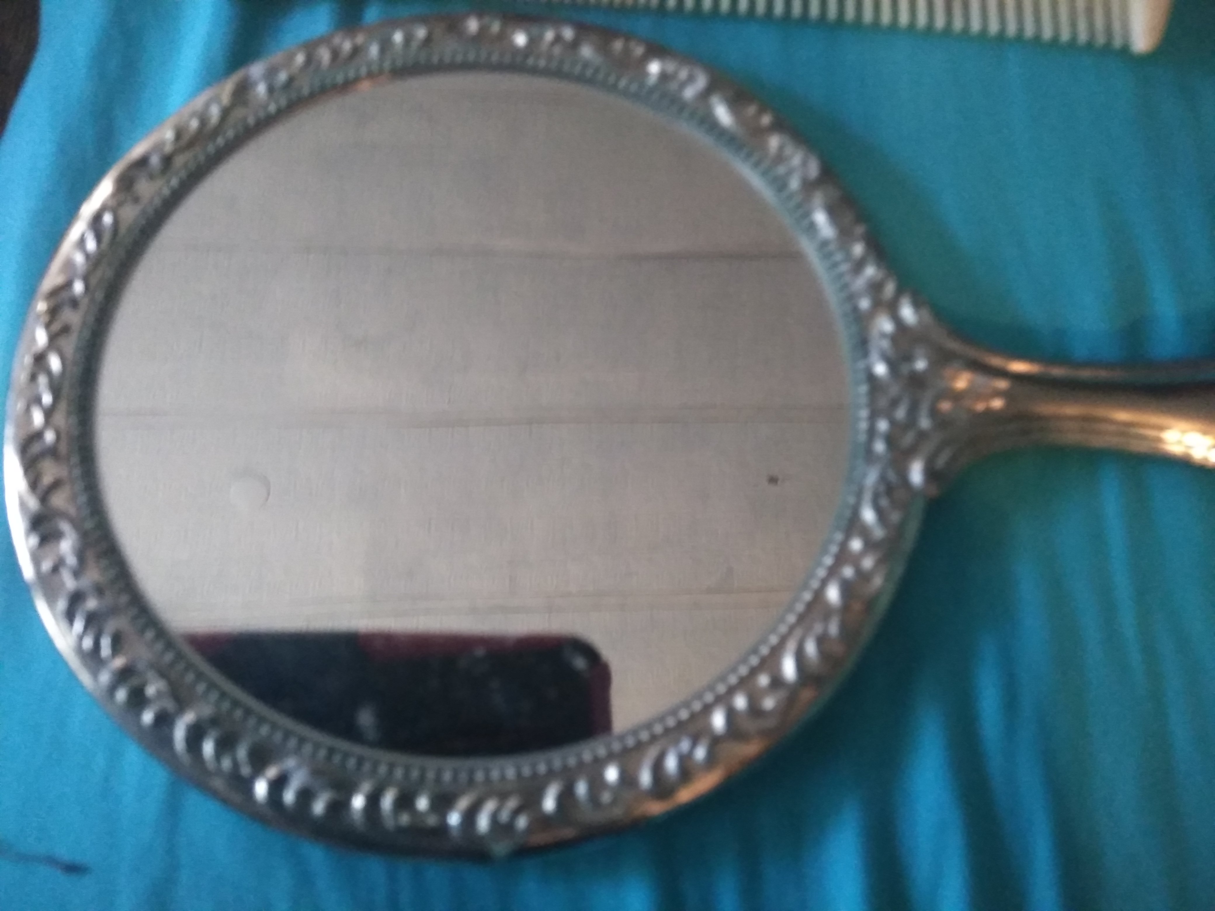 Silver mirror with comb set good condition don't know much about where it came from I know it's old. I would like to find out if it is rea mirroris still in tack it's really heavyll.