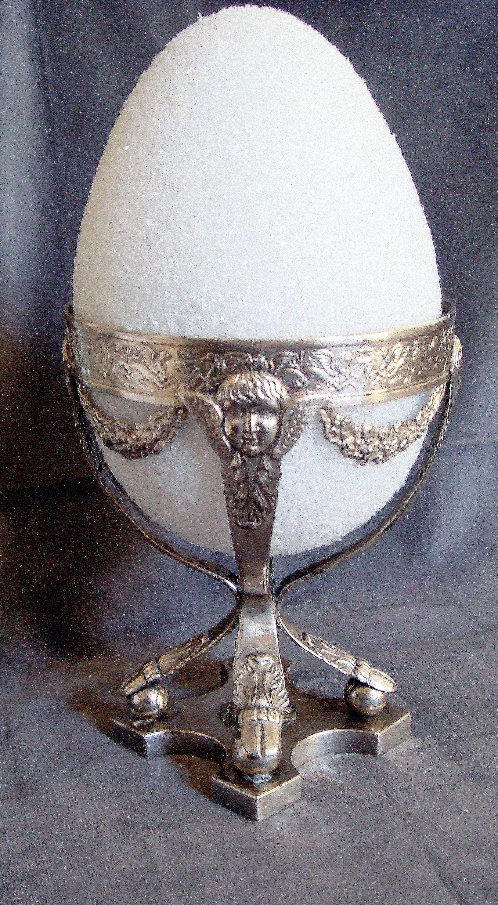This is an antique piece of silver that I believe to be a holder for an ostrich egg. I think its from the late Victorian period, c.1860's. I've enclosed a picture of the marks on the bottom. I can't identify the country of origin. I've looked at silver reference hallmark books and it may be either German or Dutch silver. Thanks