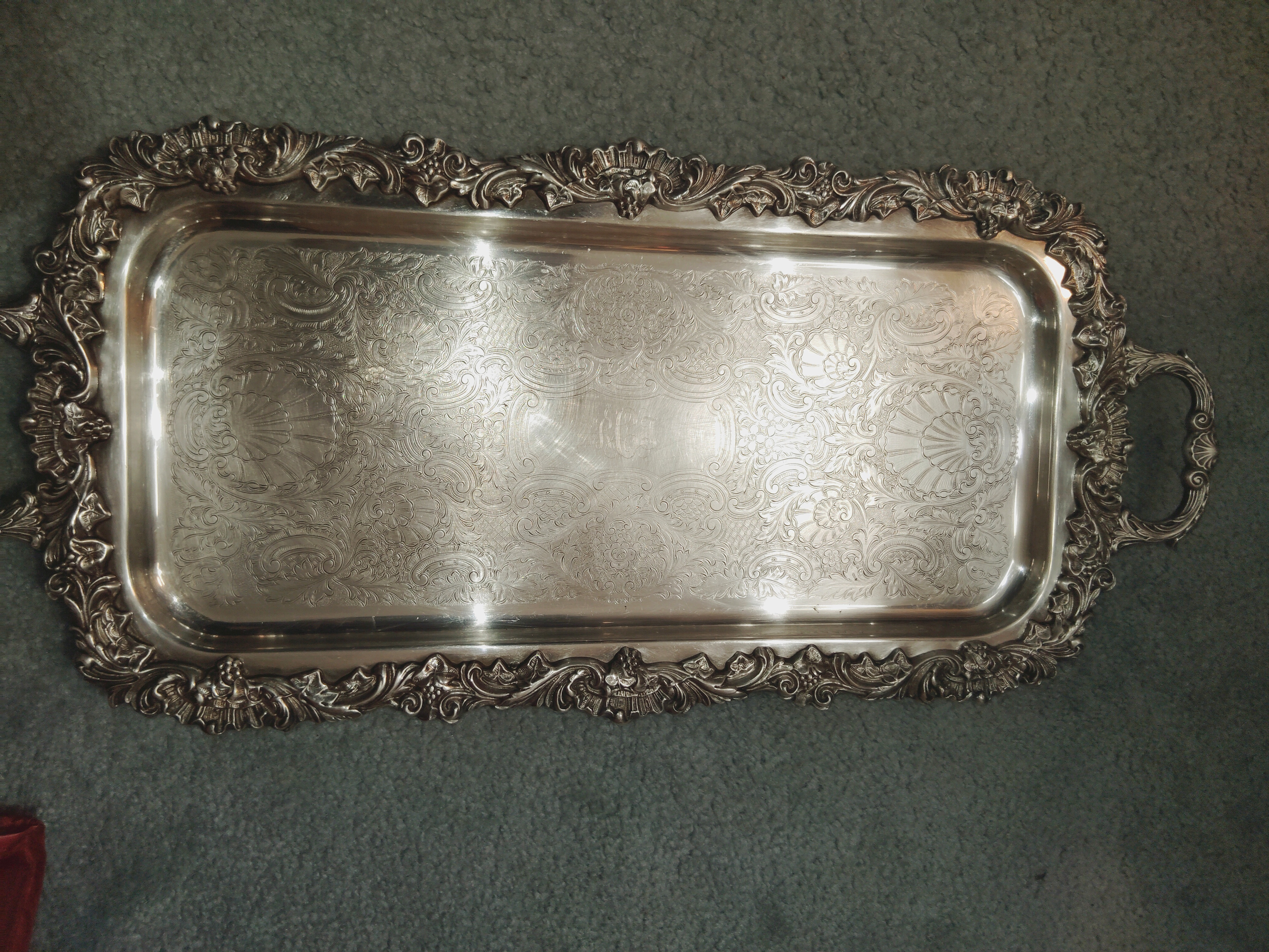 The maker of this tray is currently unknown, as no specific marks or stamps are visible in the images provided. Silver-plated items often come from various manufacturers, including well-known names like Gorham, Reed & Barton, or Sheffield. Identifying the maker can significantly affect the value, so checking the underside for any maker's marks is recommended.