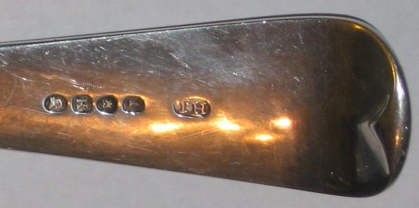 The marks on the back, from the bowl of the ladle to the top of the handle (From left to right) are: