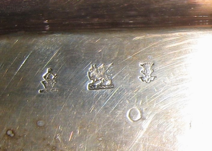 These marks are not traditional British sterling silver hallmarks, which would include a lion passant, date letter, and city mark. Instead, these are typical of silverplate pieces made in the late Victorian to early 20th century, likely from a British or American maker aiming for an elegant but affordable silver-like look.