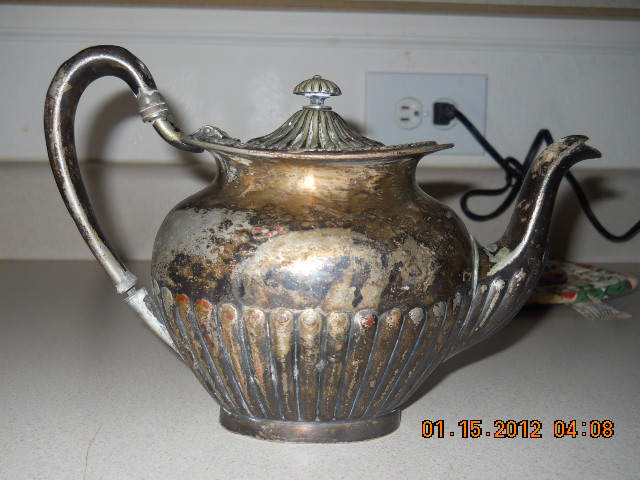 OLD TEA POT WITH PLAIN STRAIGHT LINES AND HINGED TOP