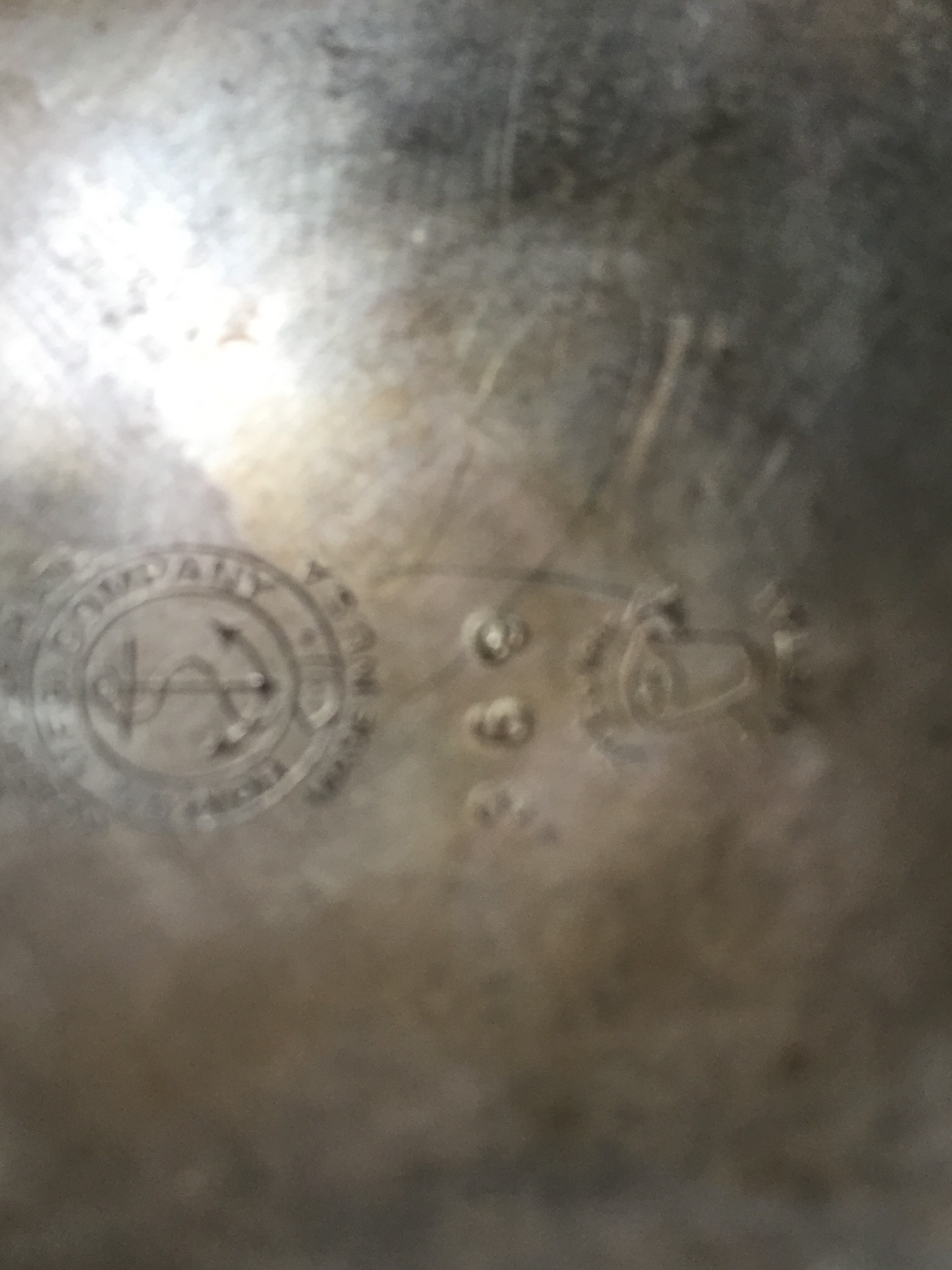 stamped on the bottom is Warranted quadruple Plate Homan MFG Company with the picture of an anchor - made in USA  369 Special Metal