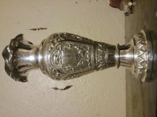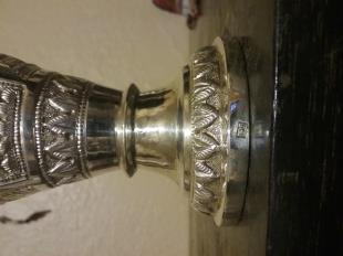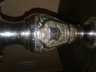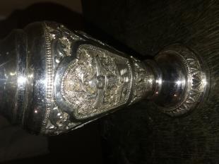 Silver vase that is marked with 90 for 90% pure, it also says from the urr family.