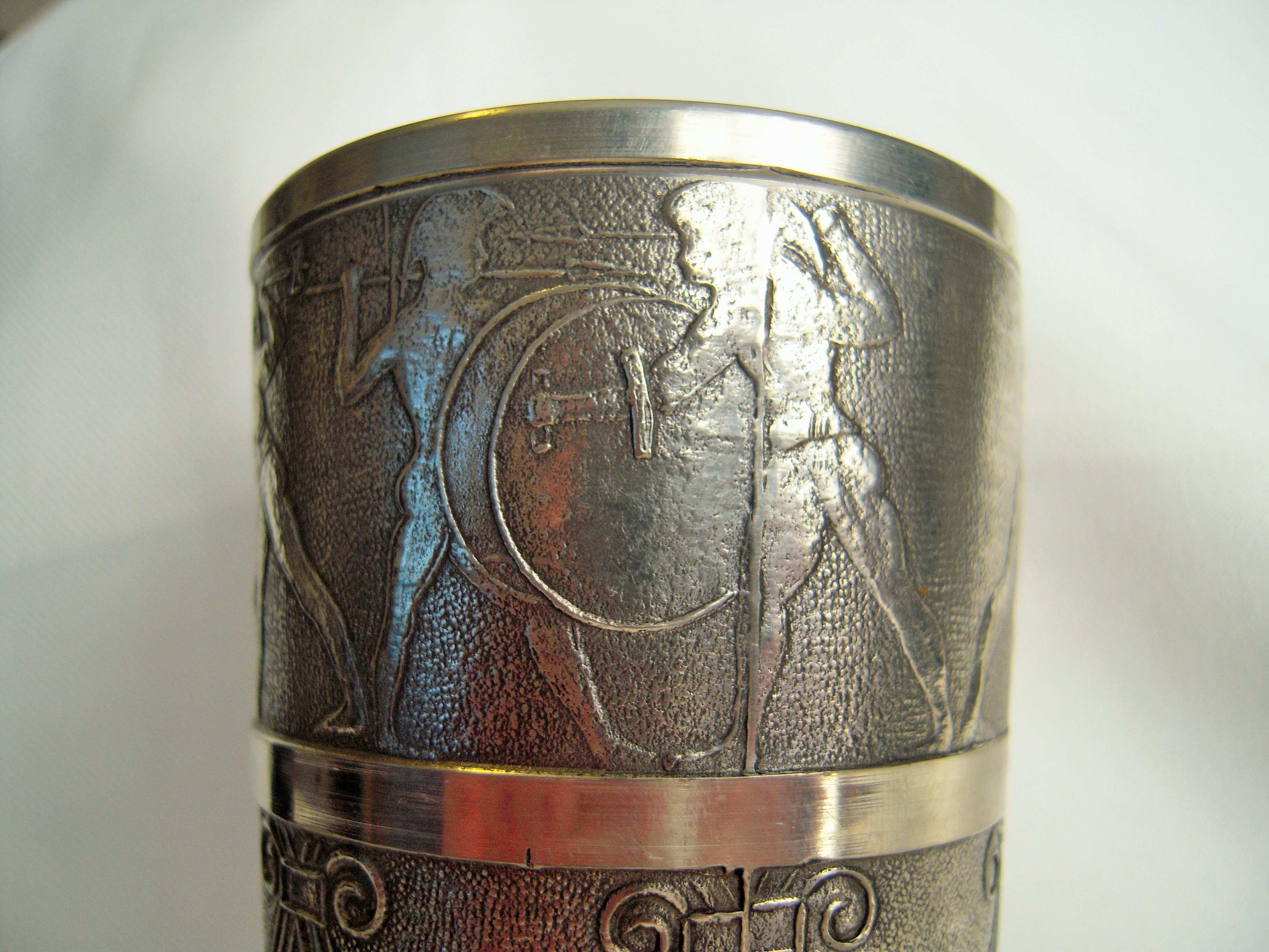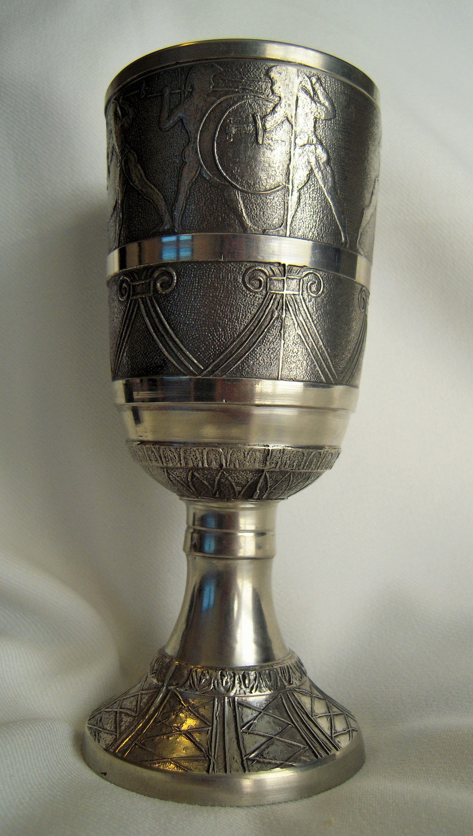 Silver Wine Cup with decorative warriors