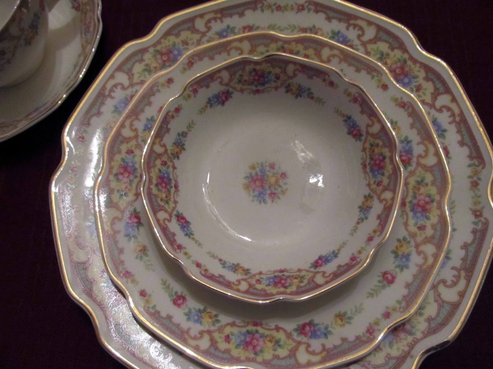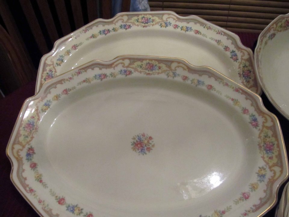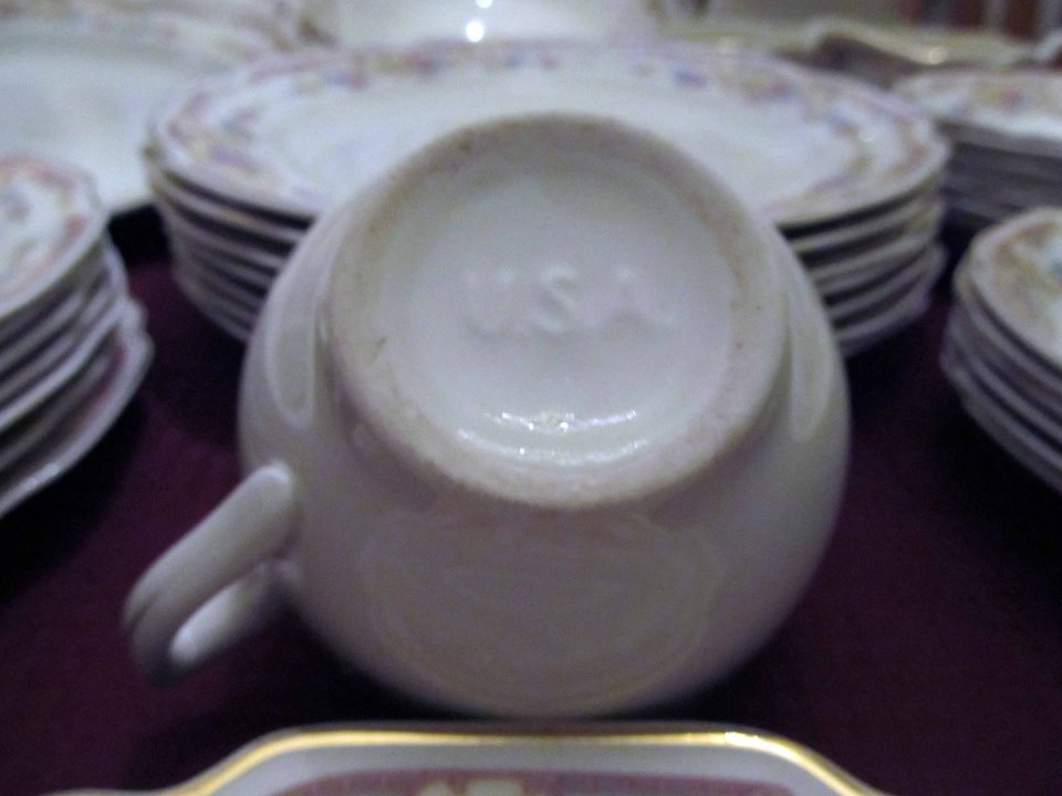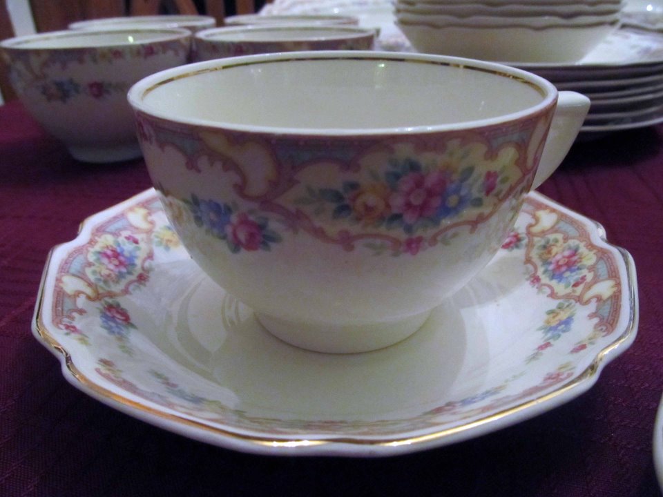I've done some digging and I have to say this set is extremely similar to HL Eggshell Nautilus. There are no stamps on any of the dishes, but on the bottom of the tea cups a raised U.S.A. stamp... molded when cup was made. Set of 7. I am interested in selling, but would like to know their value first.