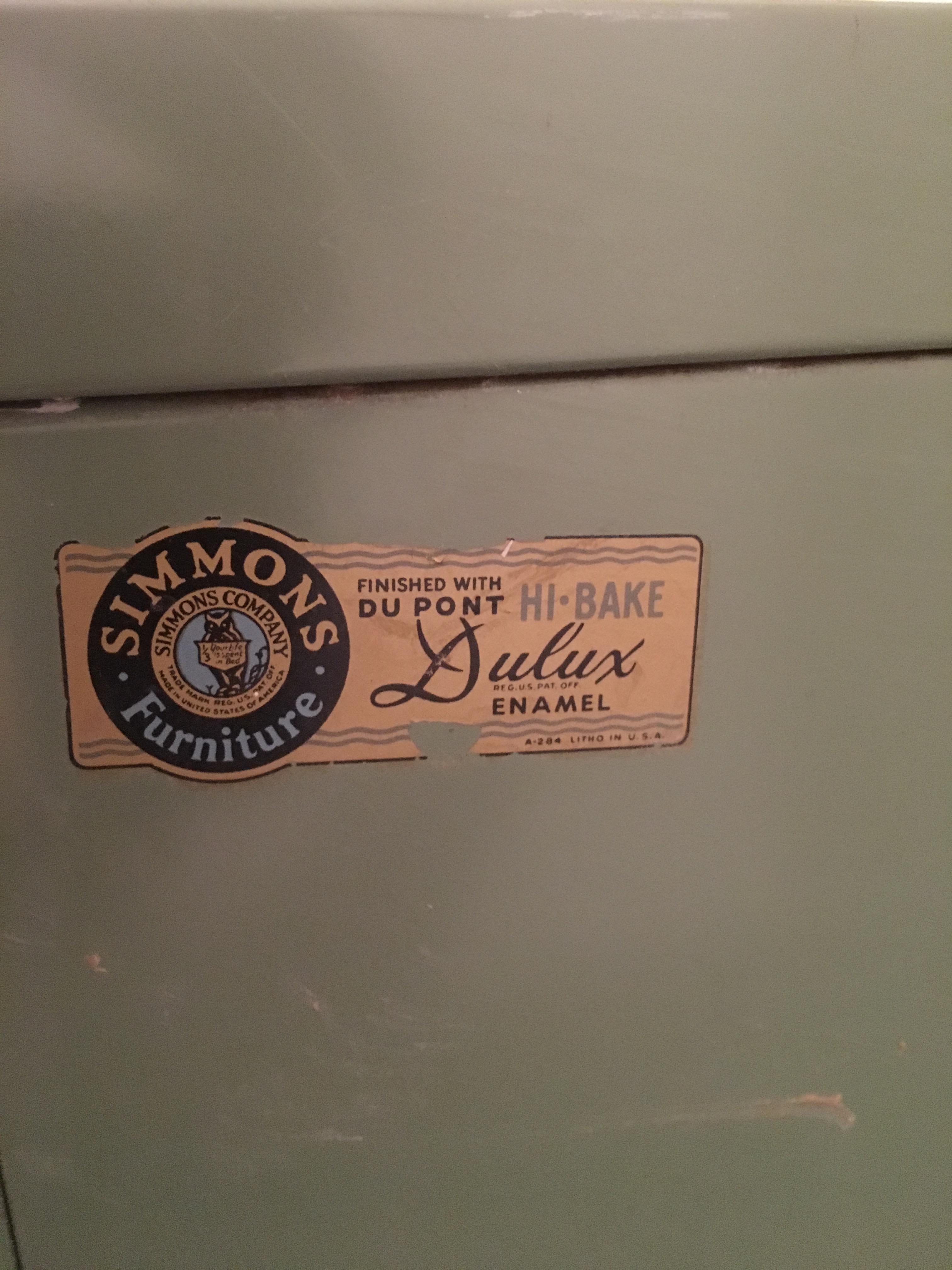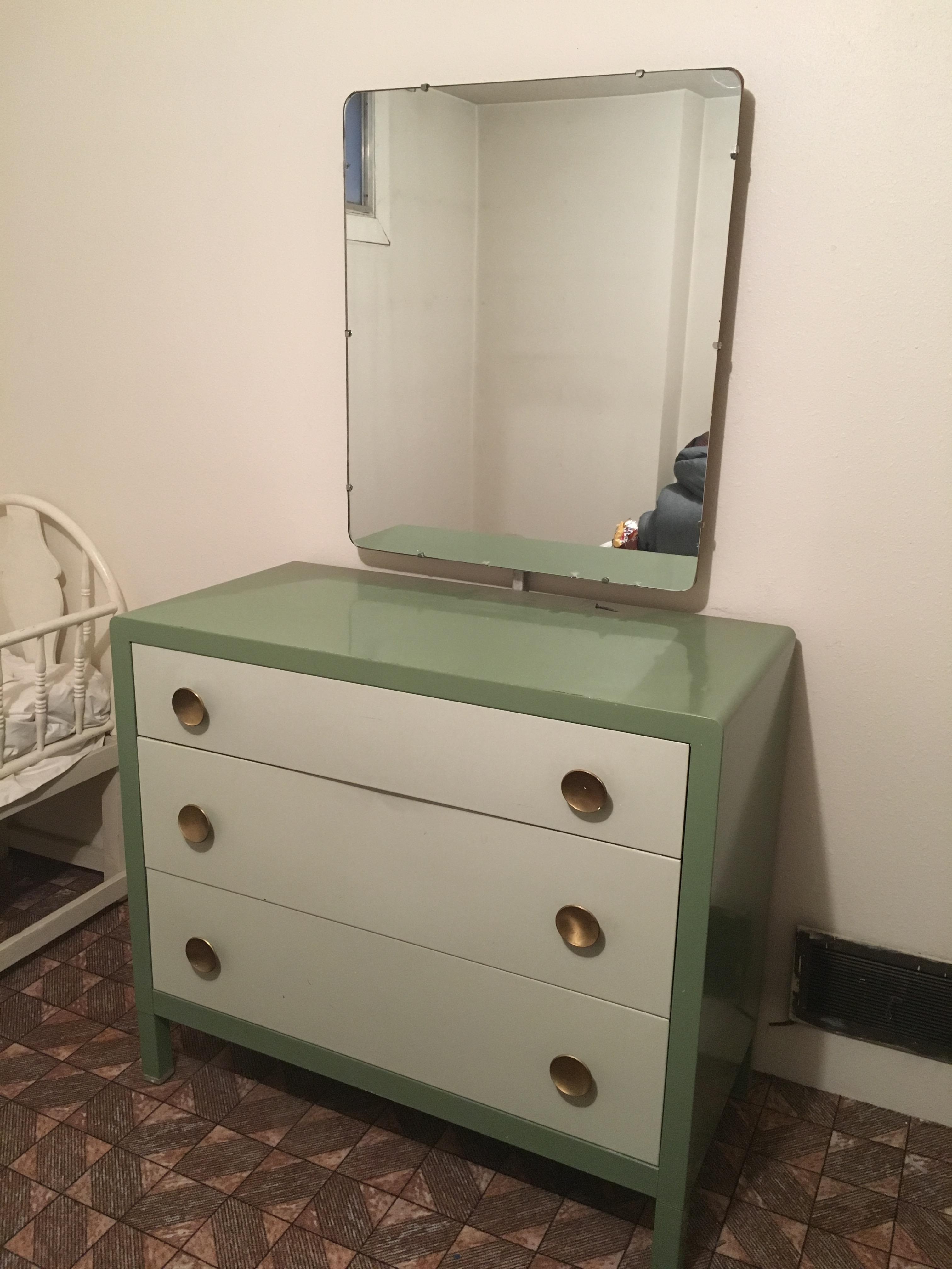 Green metal Simmons dresser with mirror