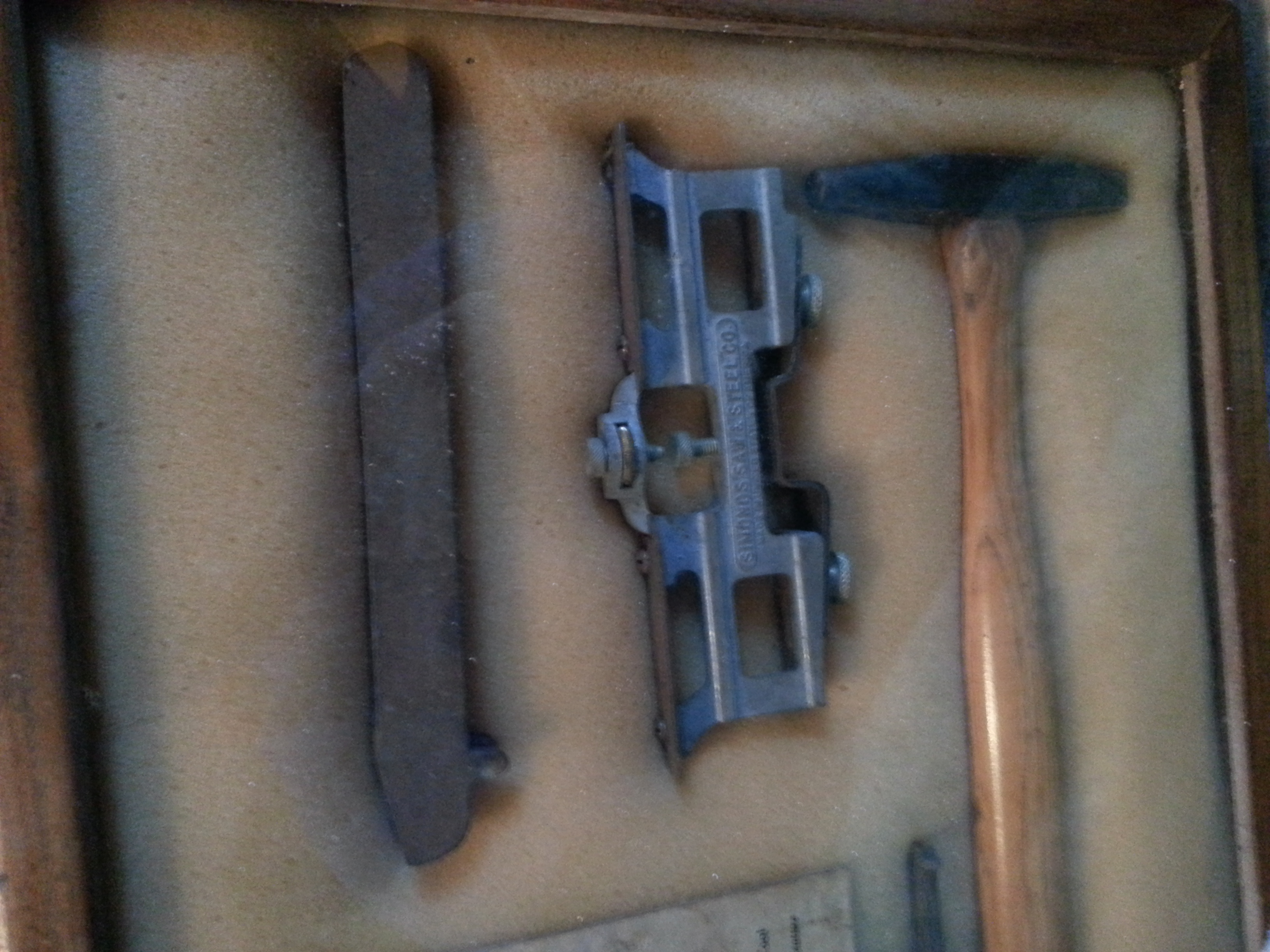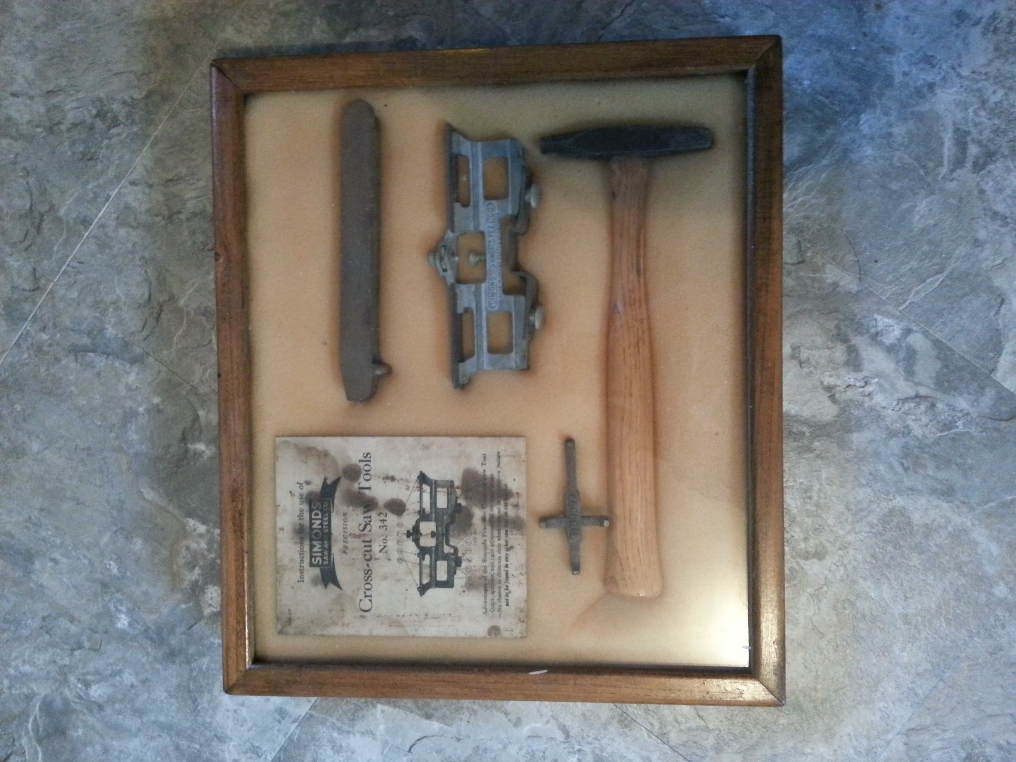All I know about these tools is that they are cross cut saw tools- sharpener and straightener/tuner-- so I have been told anyways. It was given to me by my grandfather and it is in an old protective wooden shadow box. It also has the original instruction manual with it; however, I am not brave enough to open it, I am scared I will damage something and it be a decrease in value. If anyone knows what this is and what it is valued at, please let me know. My grandfather says he had no idea the value either so we are just curious. :-)