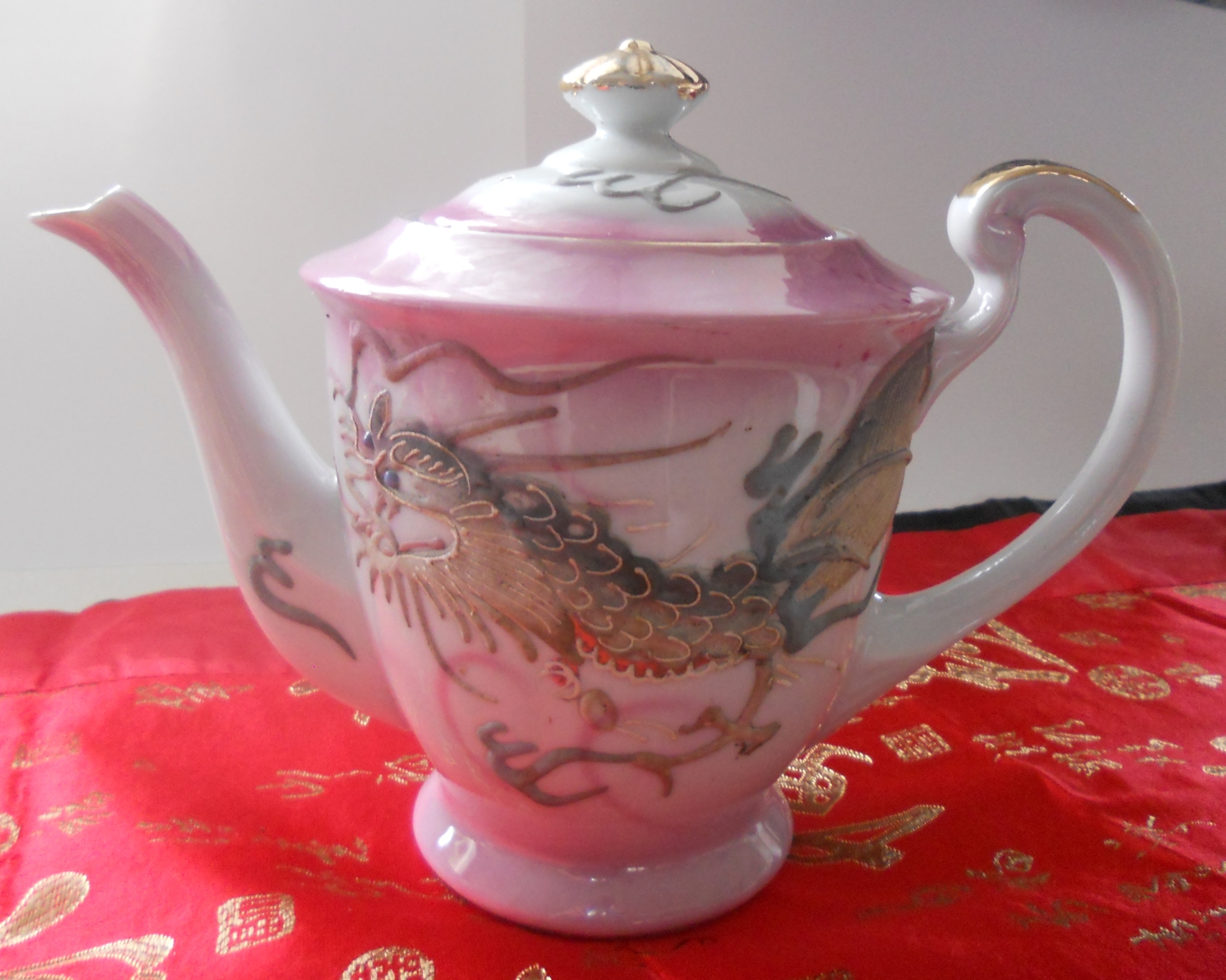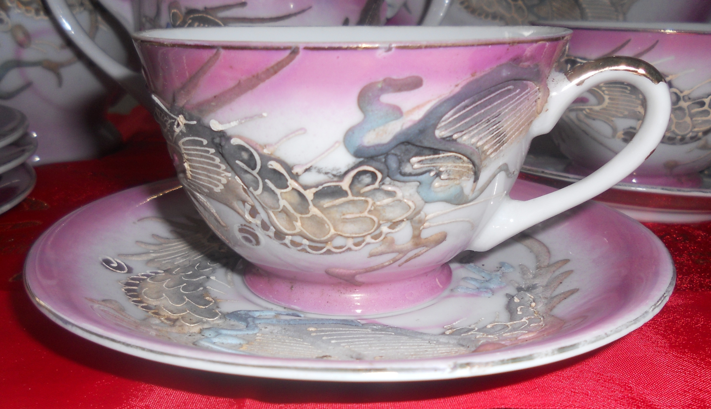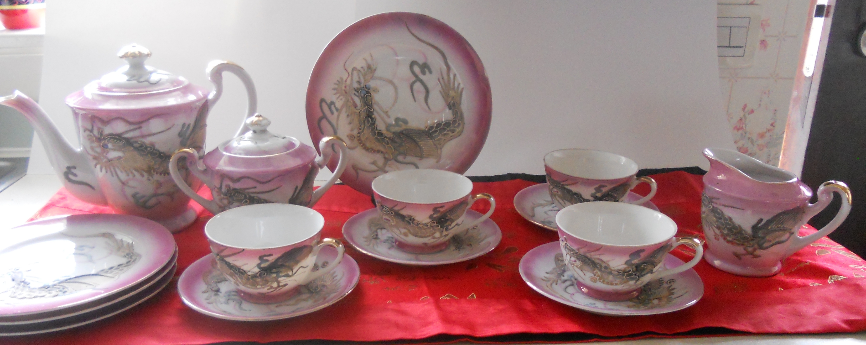 the sugar bowl with the lid has a small peice broken off one of the handles, although the piece is there and could be repaired