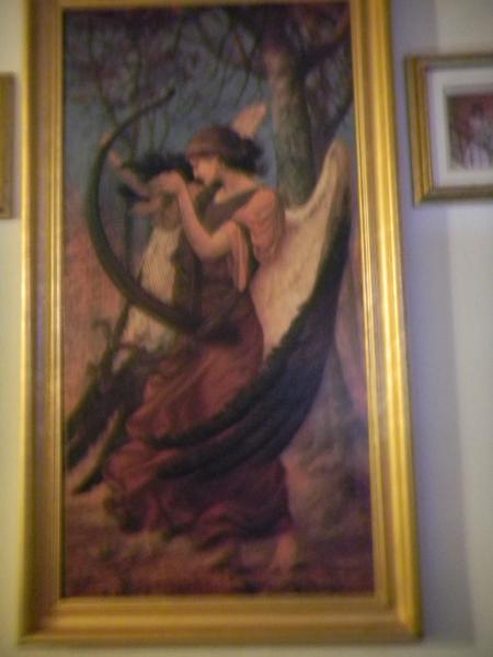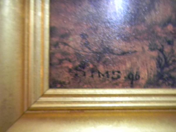 it is a large 24x46 framed canvas oil painting of an angel playing a harp with the name sims 96 on the bottom left corner of the fron of the painting and the frame is made from ceader creek. i would like to get an appraisal on this painting before i deside if i am going to sell it or not.