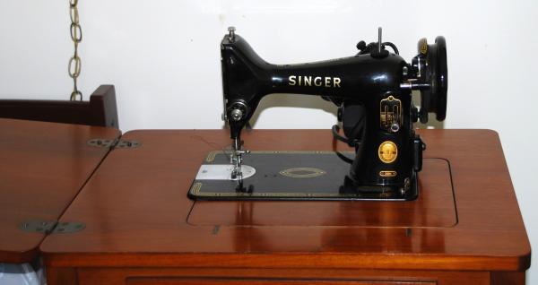 1953 Singer 99K machine in cabinet. Machine is in immaculate condition, runs great. The plain cabinet is in nice shape, only scratches are a few on the inside of the fold out top. Very minor. Have button hole attachment as well as all other attachments in their original cases and motor oil. Over all condition is excellent.