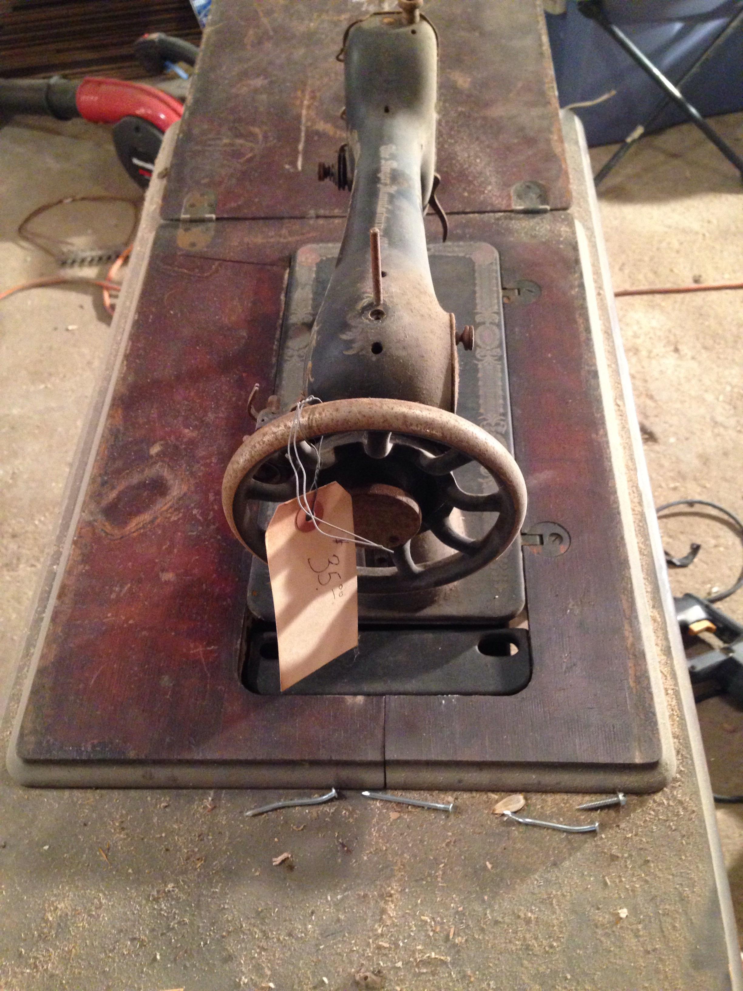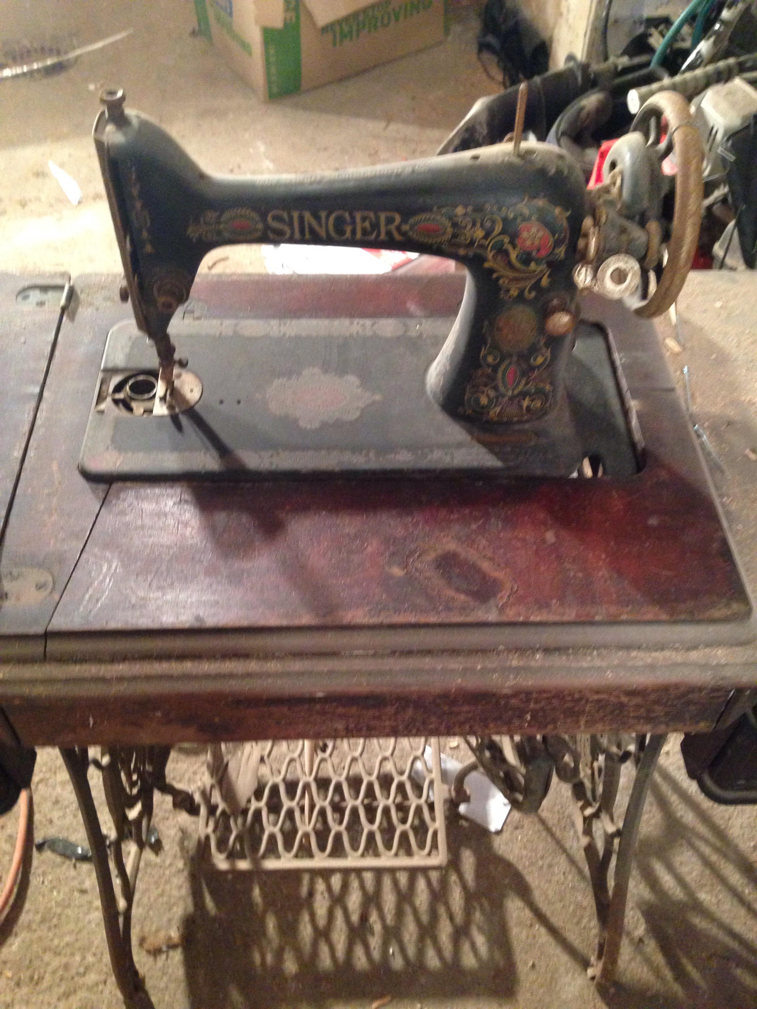 I found this in my basement of a house that I purhased.  Some of the wood is damaged but mostly in great condition. Machine itself and pedals/base are beautiful!