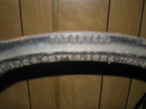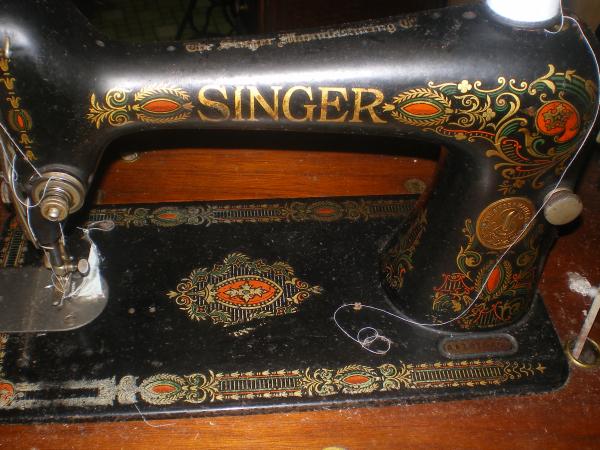 TREADLE SINGER SEWING MACHINE IN EXCELLLENT WORKING CONDITION. BUILT INTO DESK TYPE CABINET WITH AN ORNATE WOODEN COVER. IT HAS THE RED EYE DESIGN. THE CAST IRON STAND ATTACHED TO IT SAYS IT WAS MANUFACTURED ON OCTOBER 14, 1884