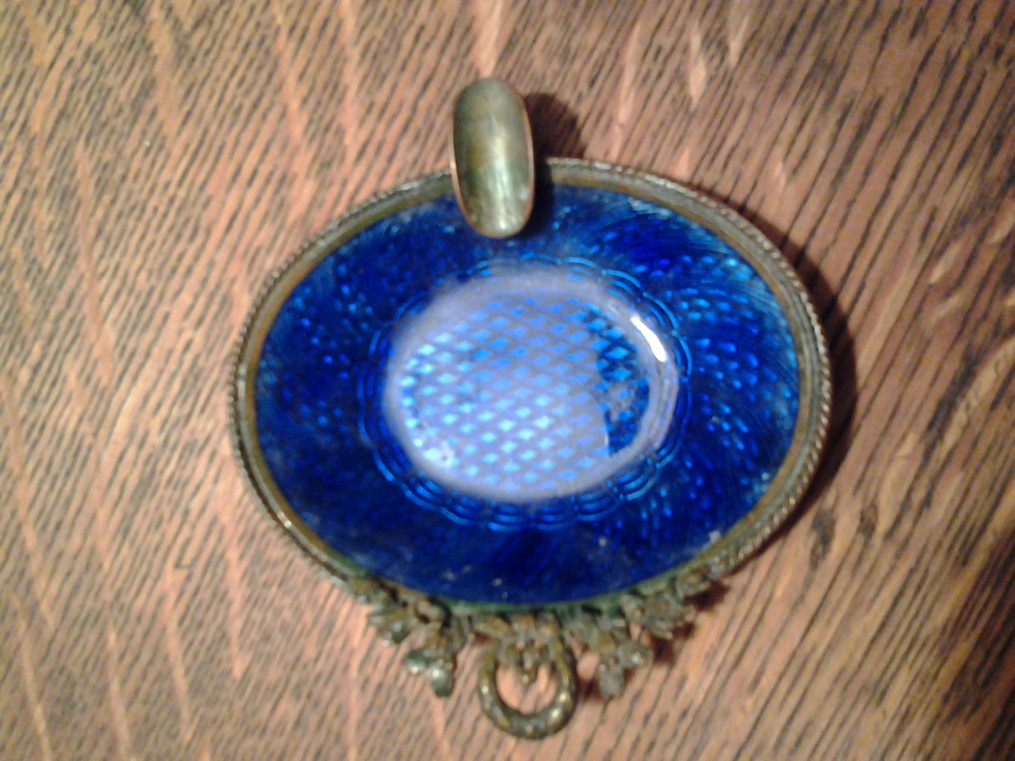 Single cigarette ashtray blue glass with a copper bottom.... stamp on bottom says CHECH-SLOV