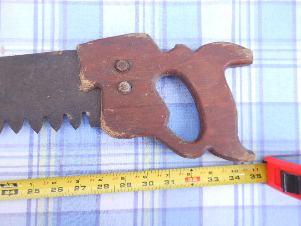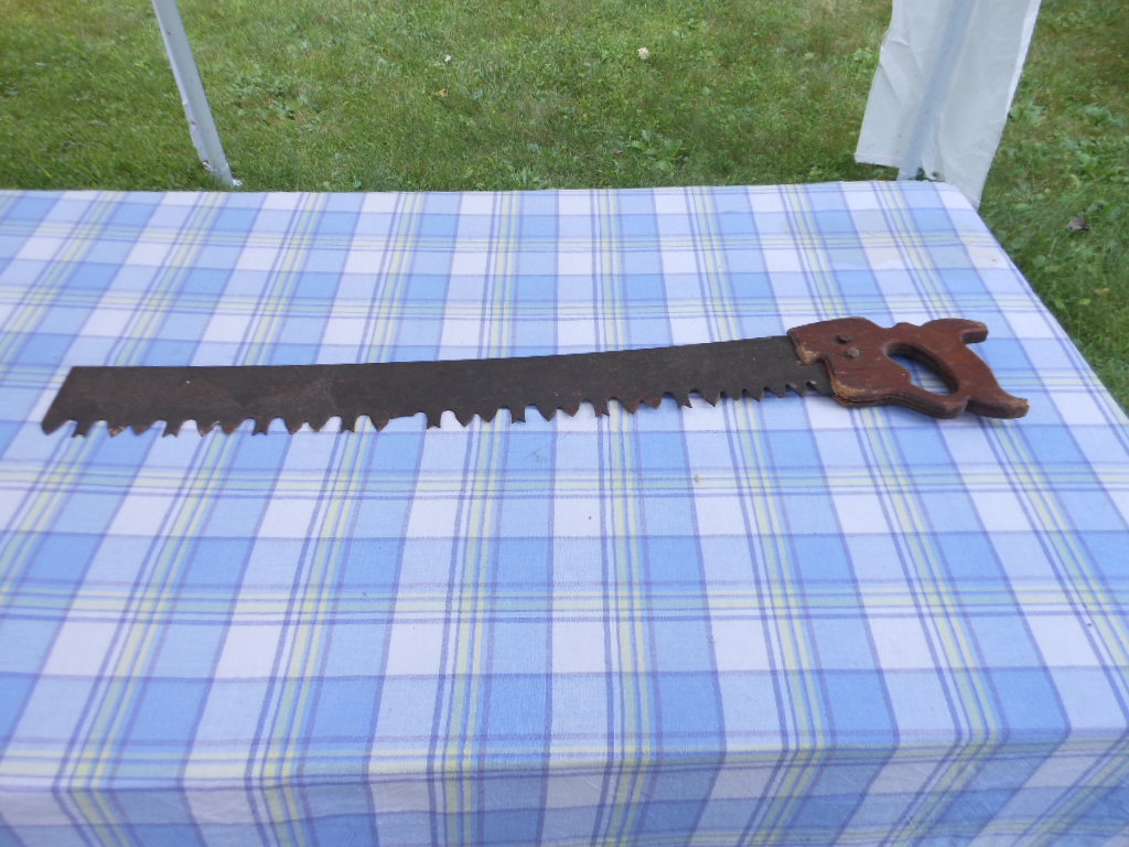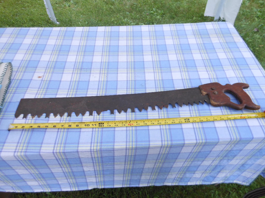 I looked at the pix more closely and it is a complete blade. I believe that this is a one-man crosscut saw rather than a buck saw. A buck saw has two handles and a brace in the middle. I saw one like this sell for $60 at a local auction a few years back. Yours looks like one tooth is broke, still a nice saw. My best to you.