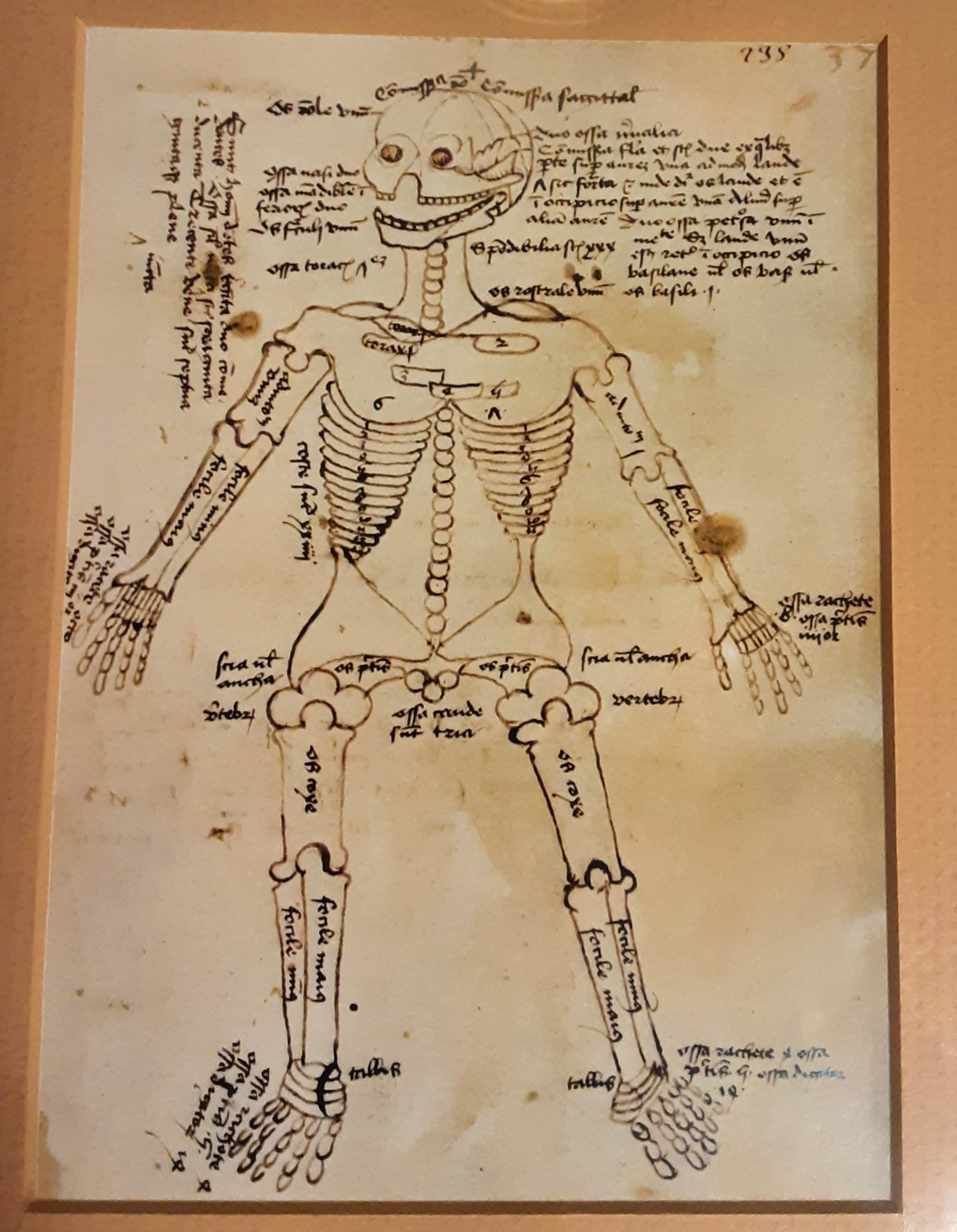 Early 15th Century Skeleton Drawing (Latin Manuscript Copy)