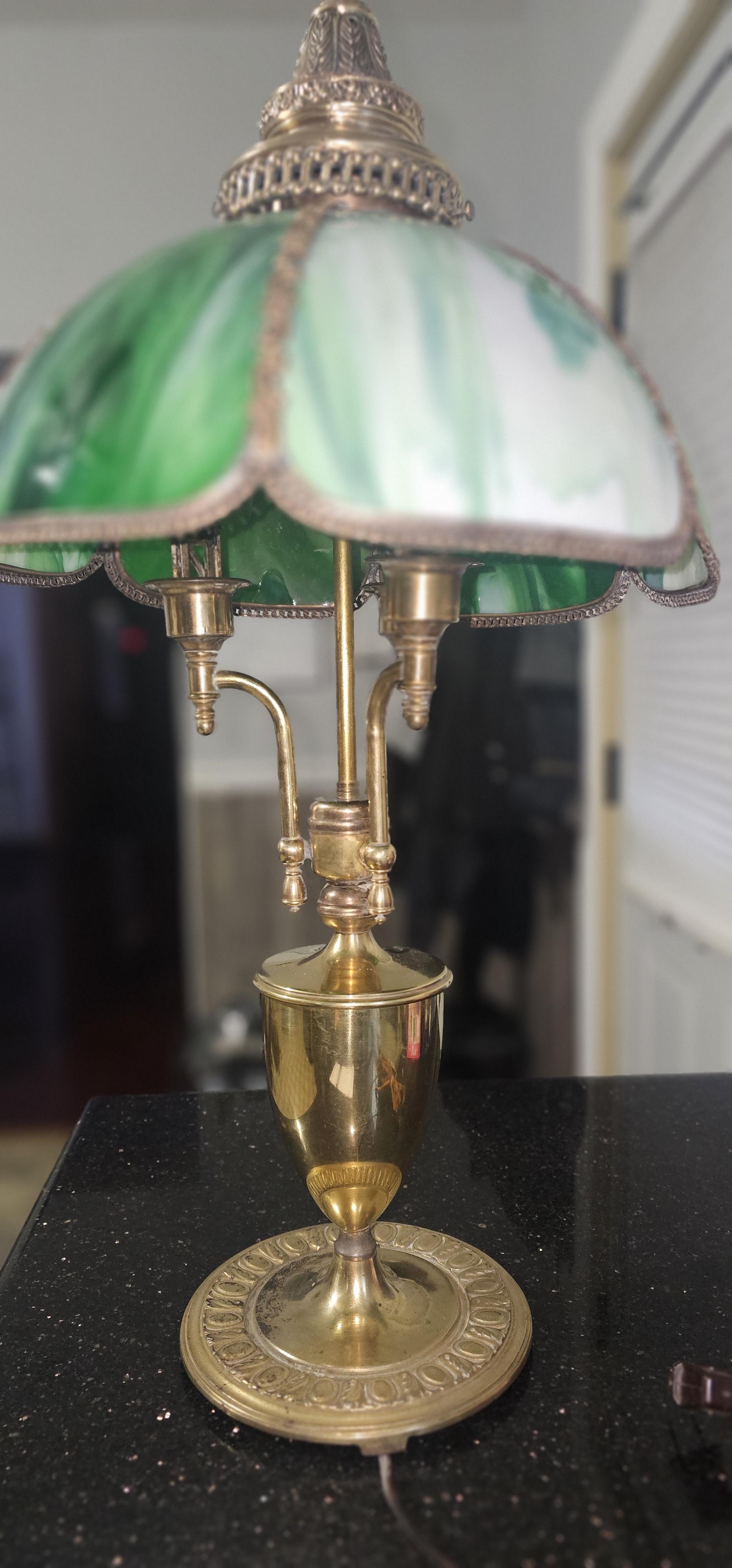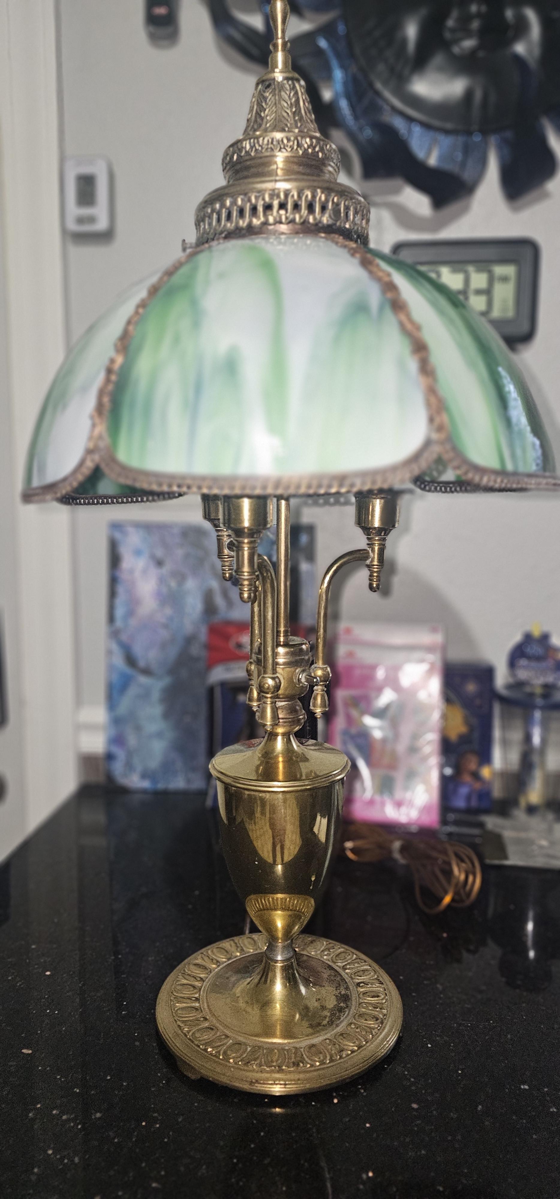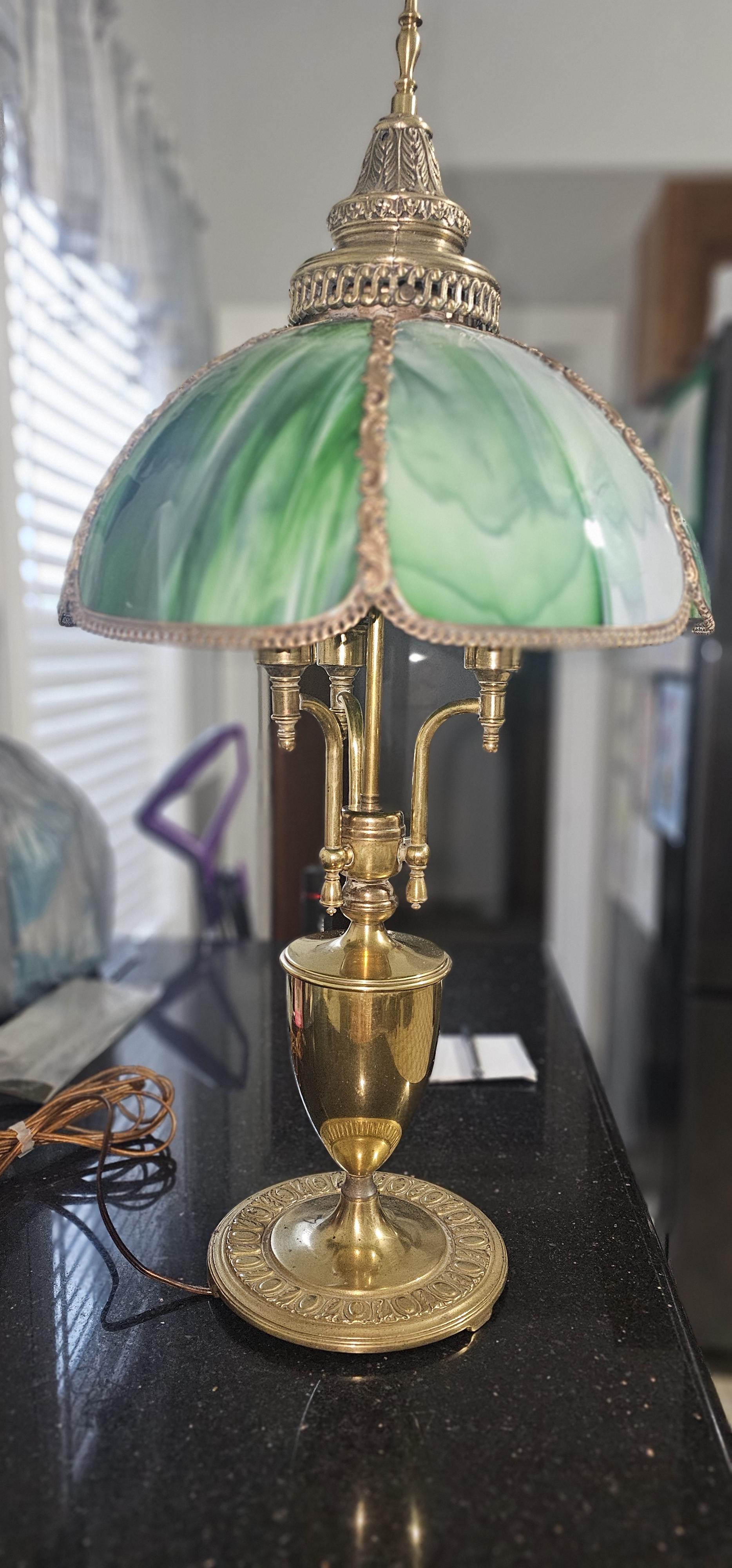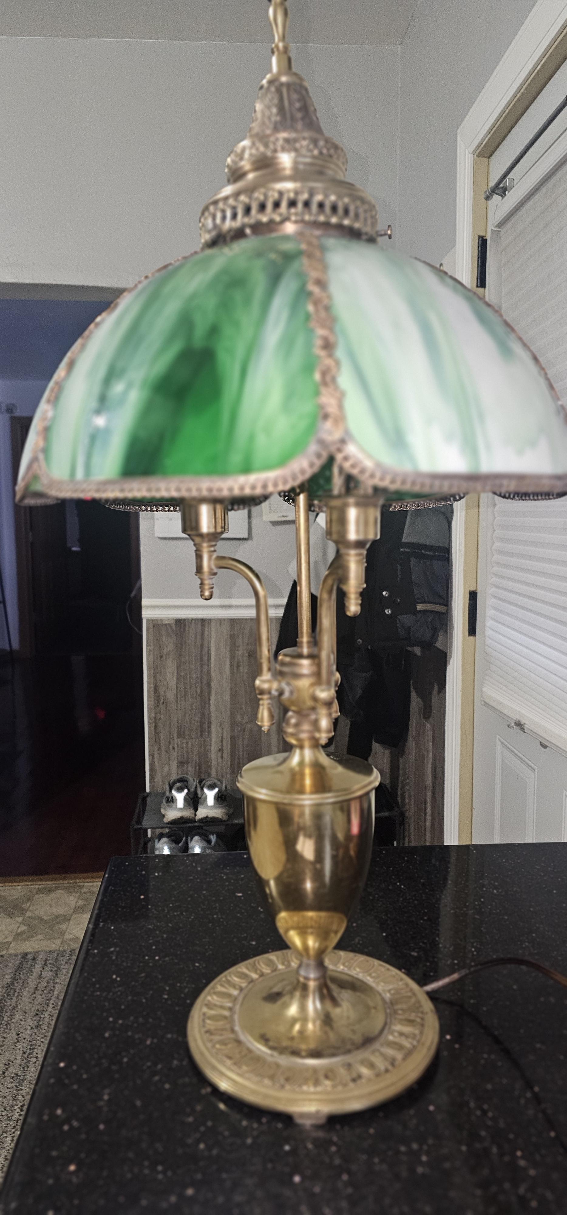 Green slag glass lamp