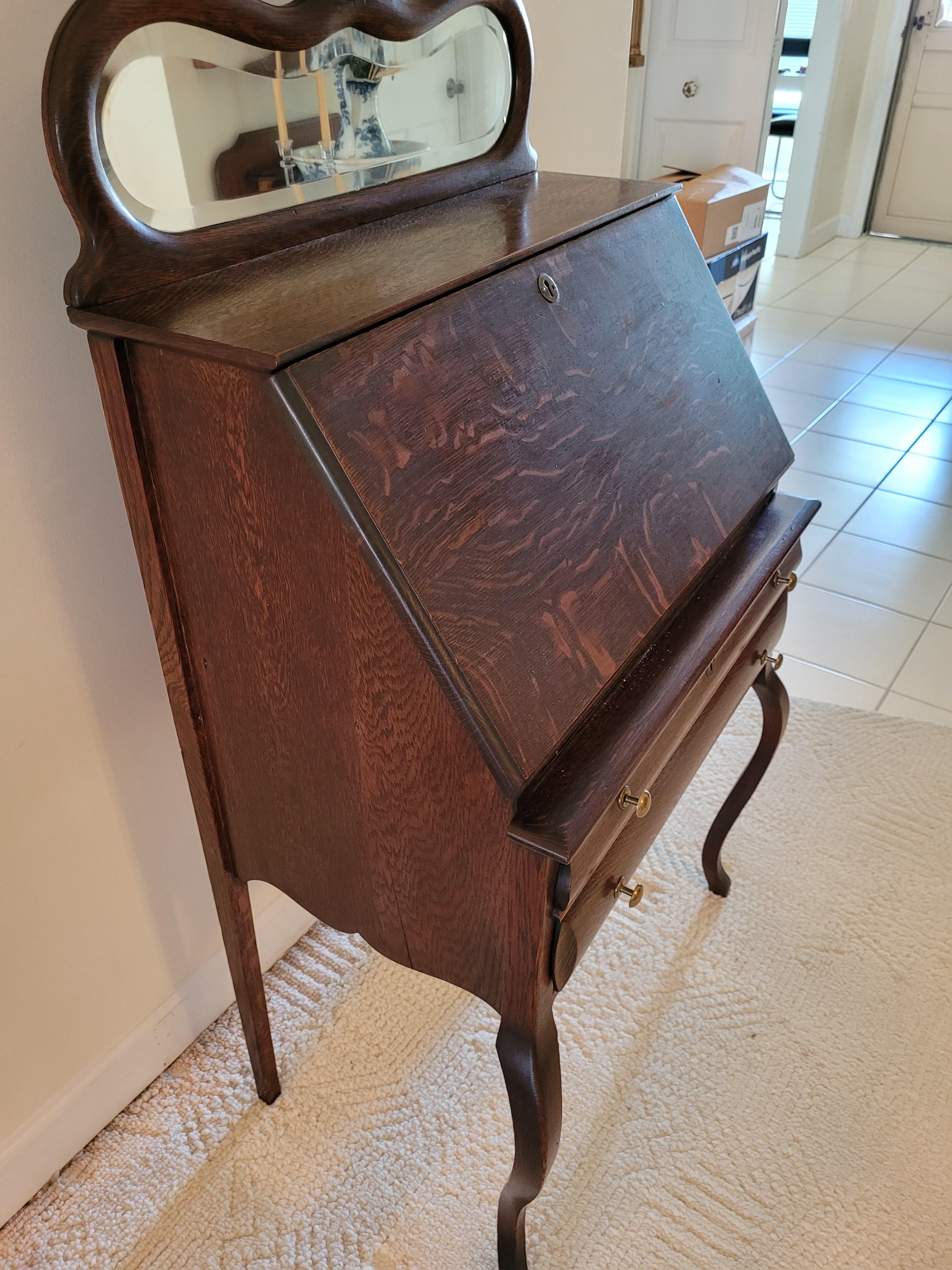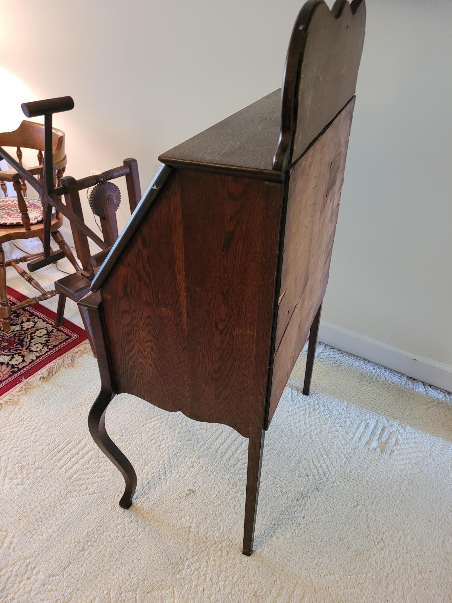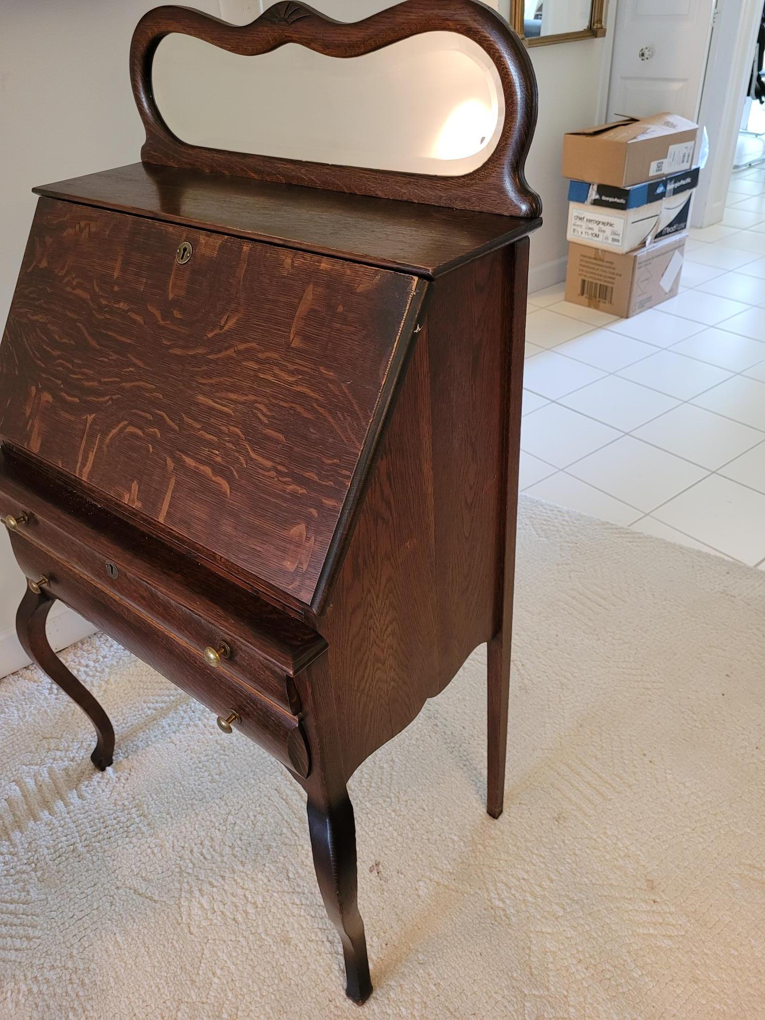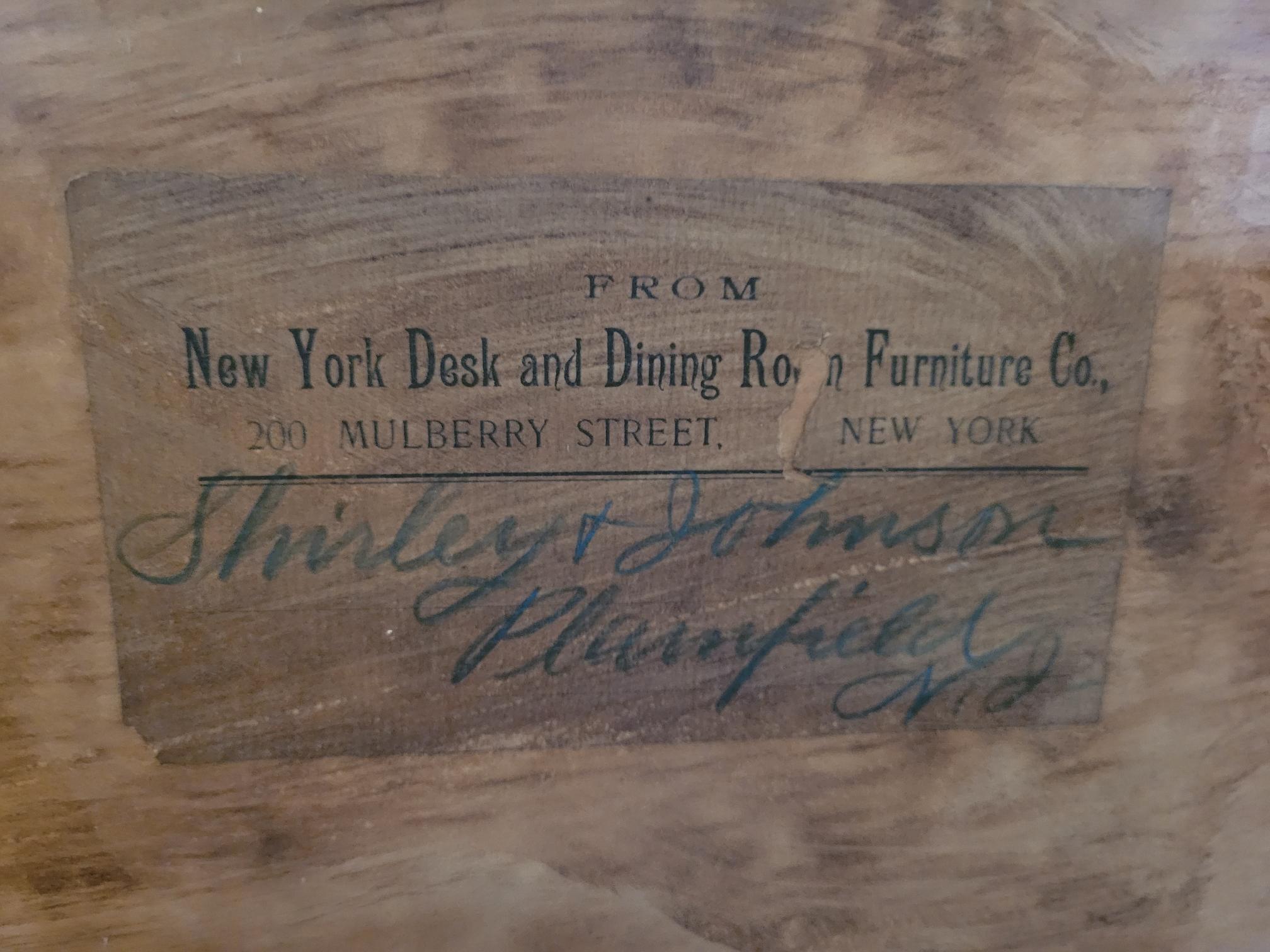 Dont know much about it. My mother in law has had it for at least fifty years. There was a label in the back, which I included a pic of. All parts appear to be original including the beveled glass mirror on top. Its pretty sturdy and has minimal wear. No major chips or scratches. The interior left side drawer is loose
