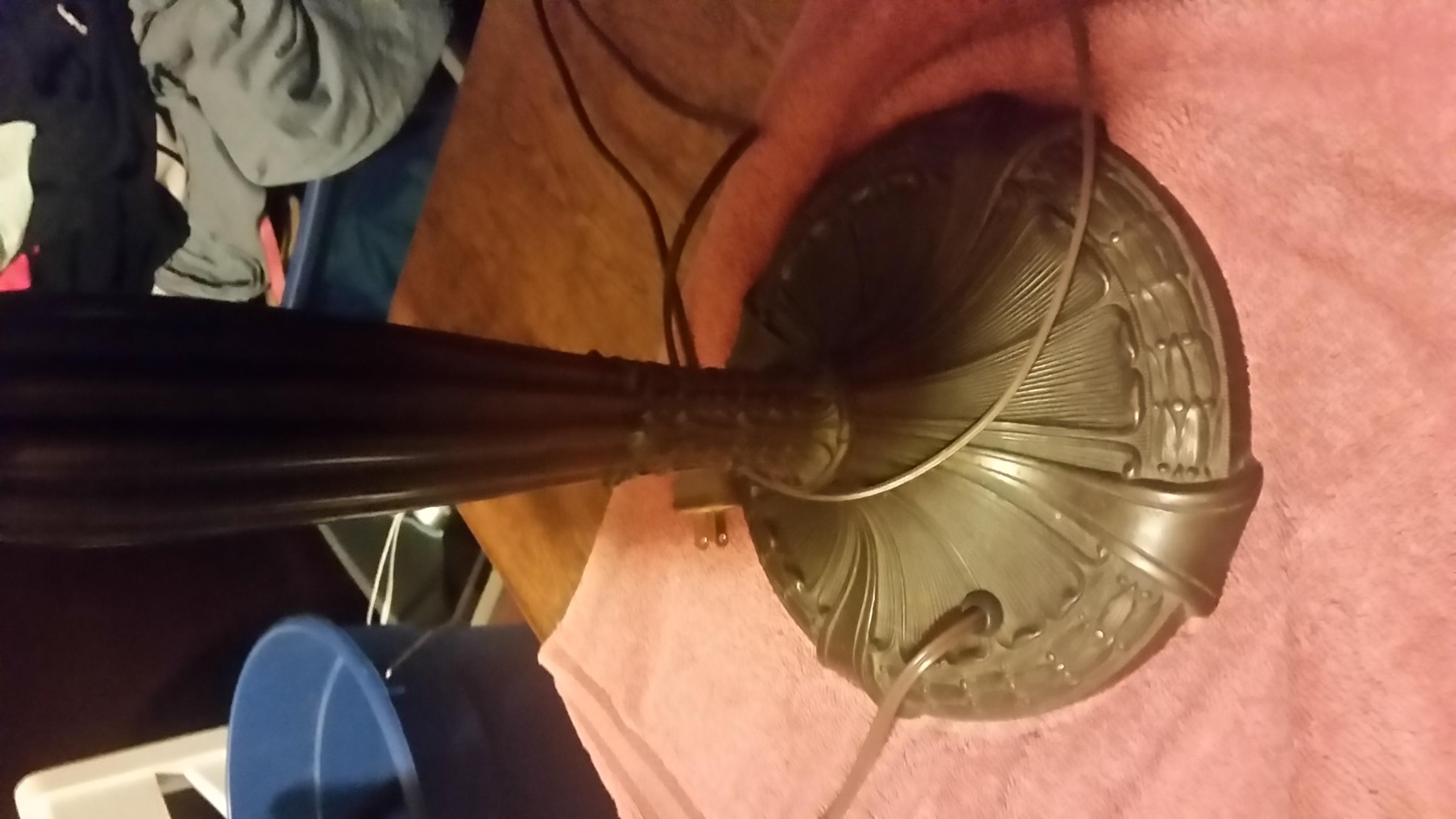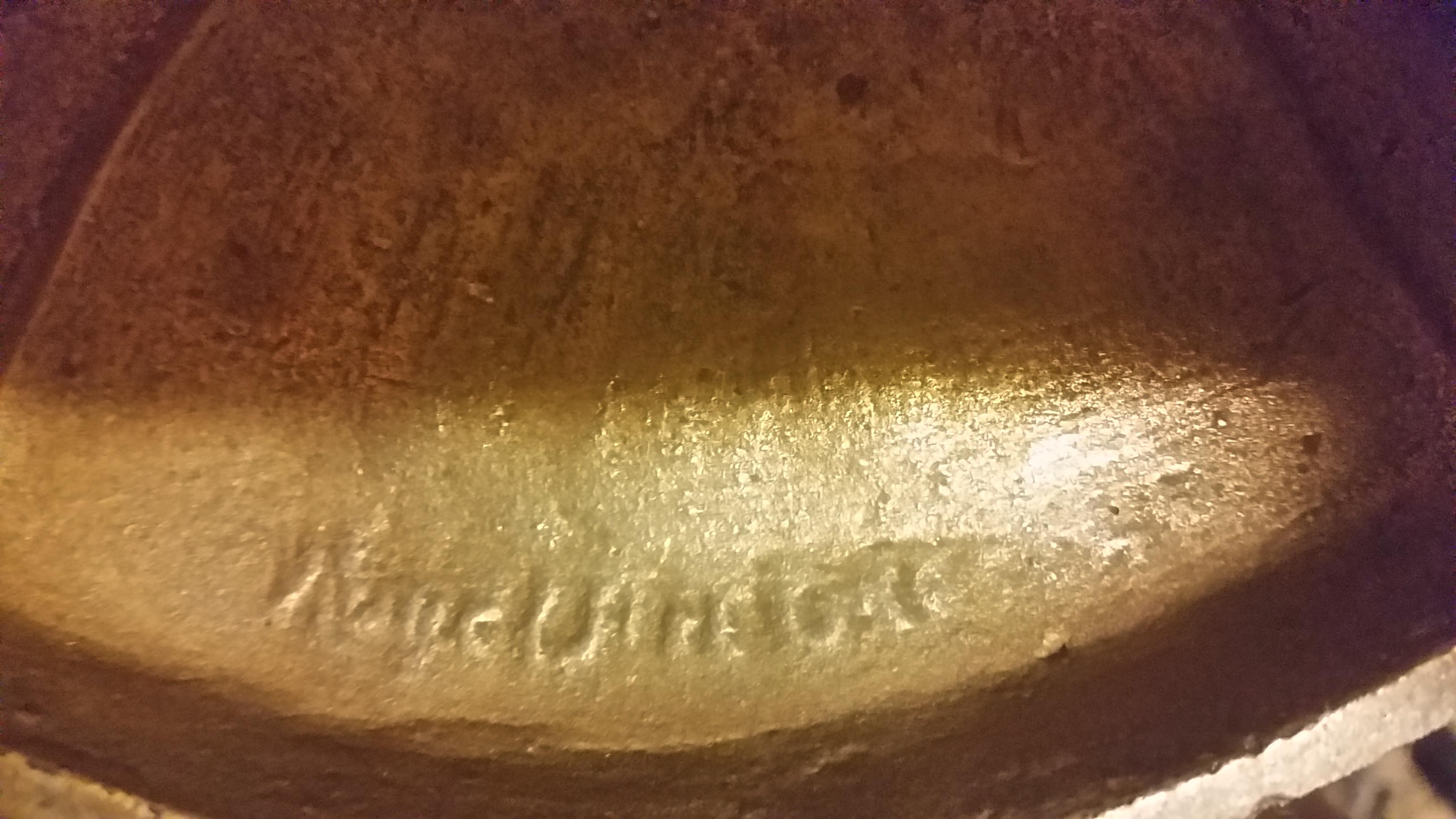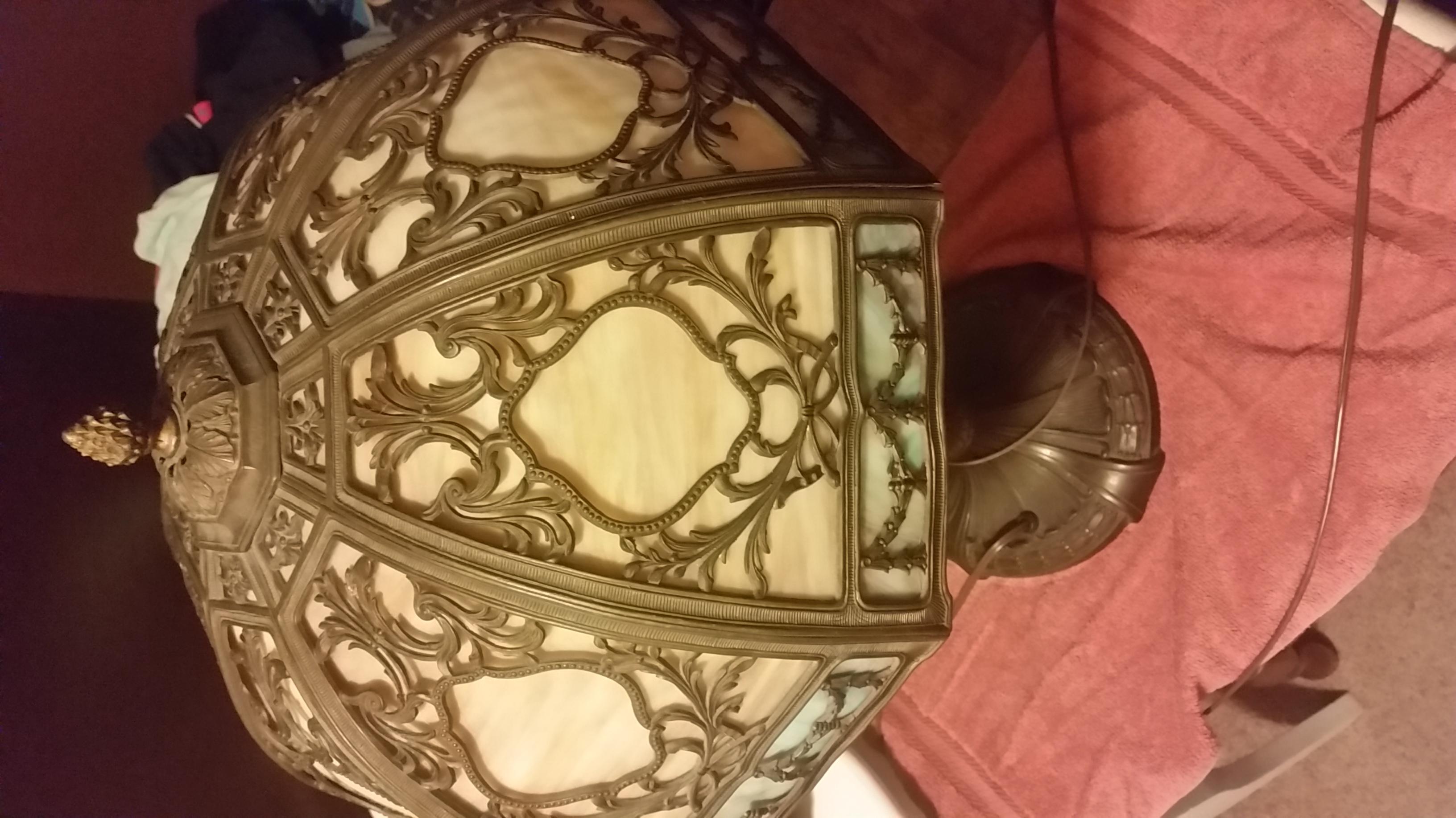 I had this lamp given to me, and I don't know much about it. I do know it's very heavy and I have not been able to figure out what the manufacturer mark says. I'd appreciate any help you can give!
