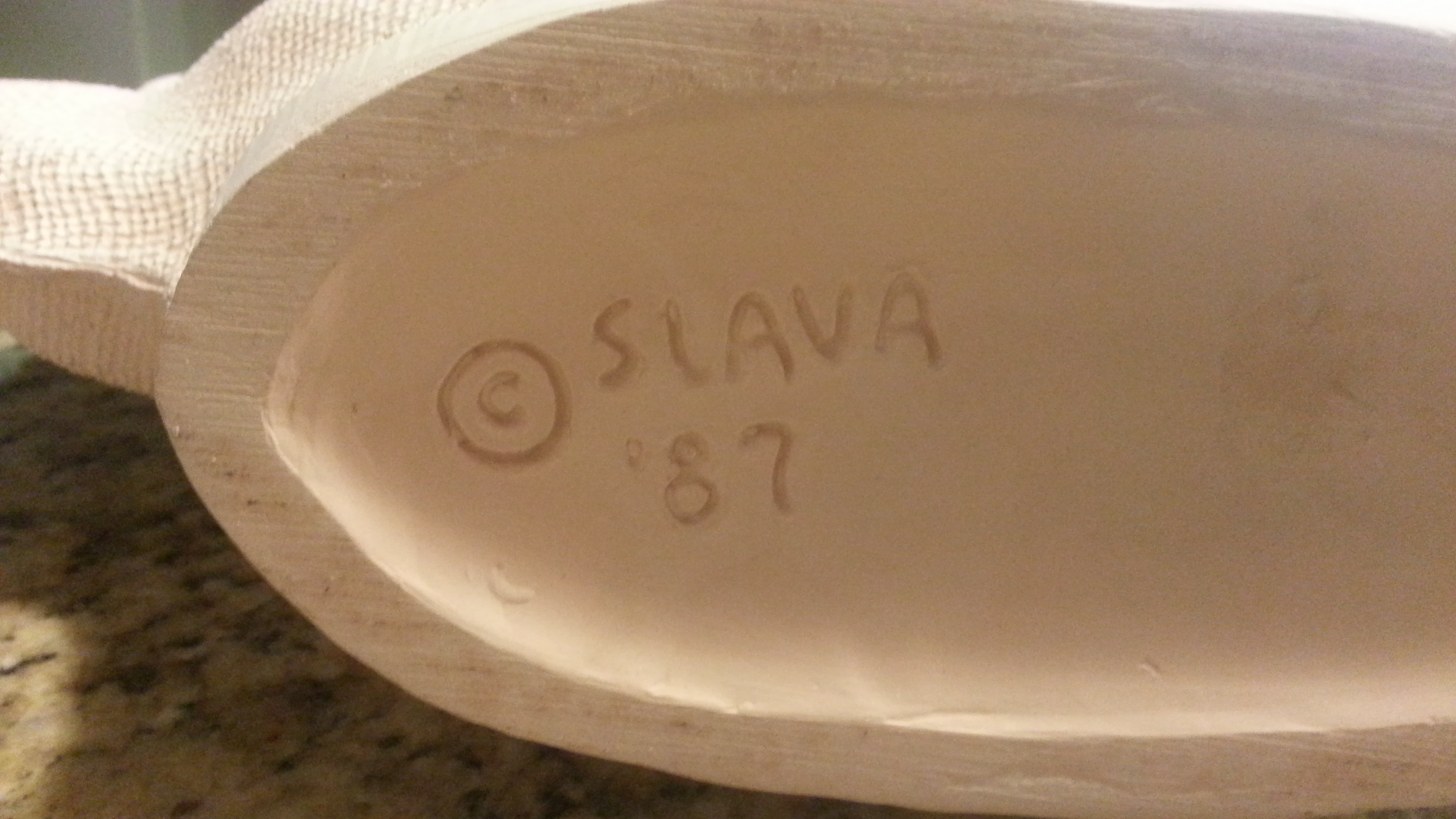 Acquired this at the thrift store. I don't know anything about it besides the signature, which is Slava, signed on the front of the piece and on the bottom, along with copyright '87.