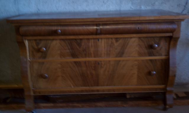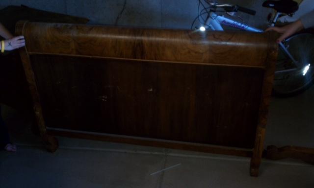 Sleigh bed with foot baord, head board, frame, three drawer dresser with mirror.