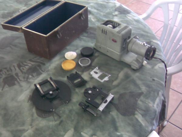 The projector is in perfect working order without a scratch in a brown carry case.