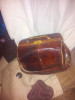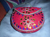 Purse is woven micro beads and gold colored thread with a beaded woven handle. The design motif could be American Indian or Middle Eastern.