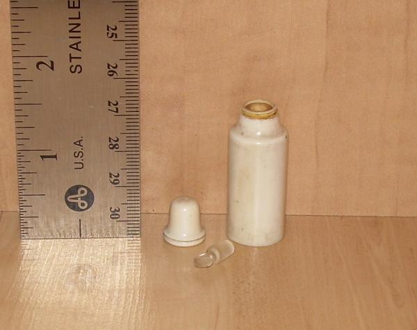This small bottle or vial has a lid that screws on, a glass stopper and a glass lining. I don't know the original purpose, but it seems like a perfume or maybe smelling salts vial. Any information would be appreciated. Thanks.