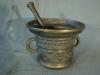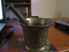 I have a small unmarked brass mortar and Pestle that stands about 2 inches tall and 2 1/4 inches wide at the rim. The pestle is about 3 inches long. it appears to be quite old, with heavy yellow brown patina, good condition, but I am unsure of the age. (it would be nice to have an estimate of the age and vallue)