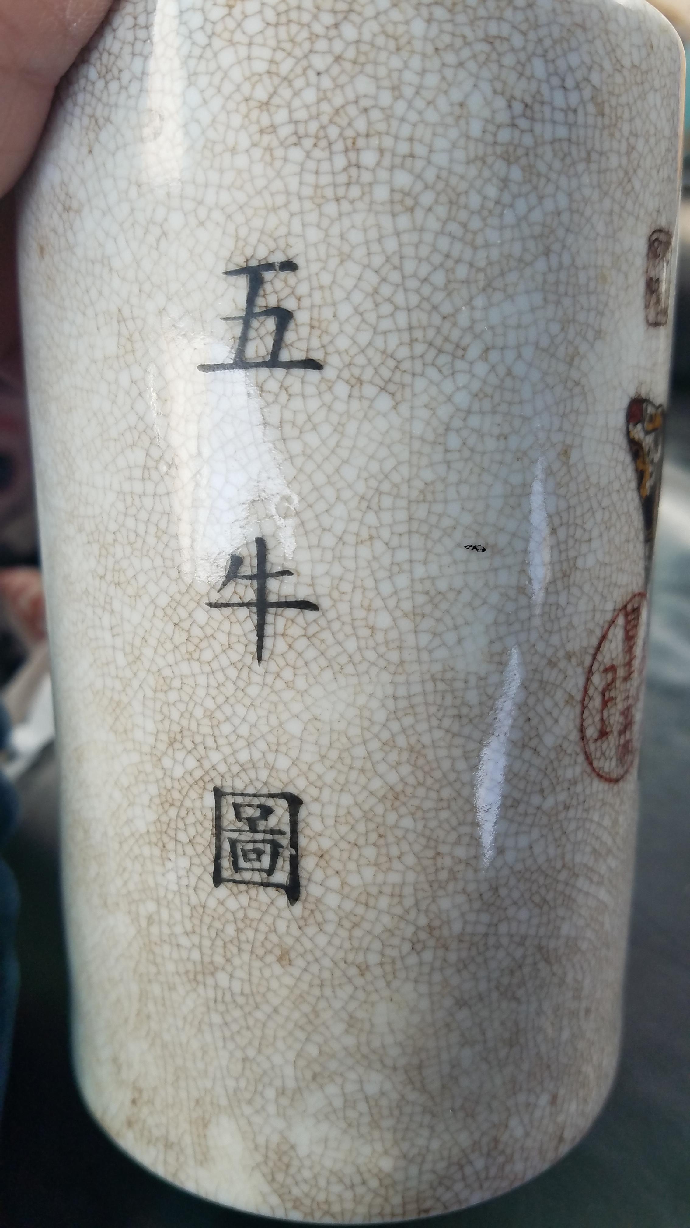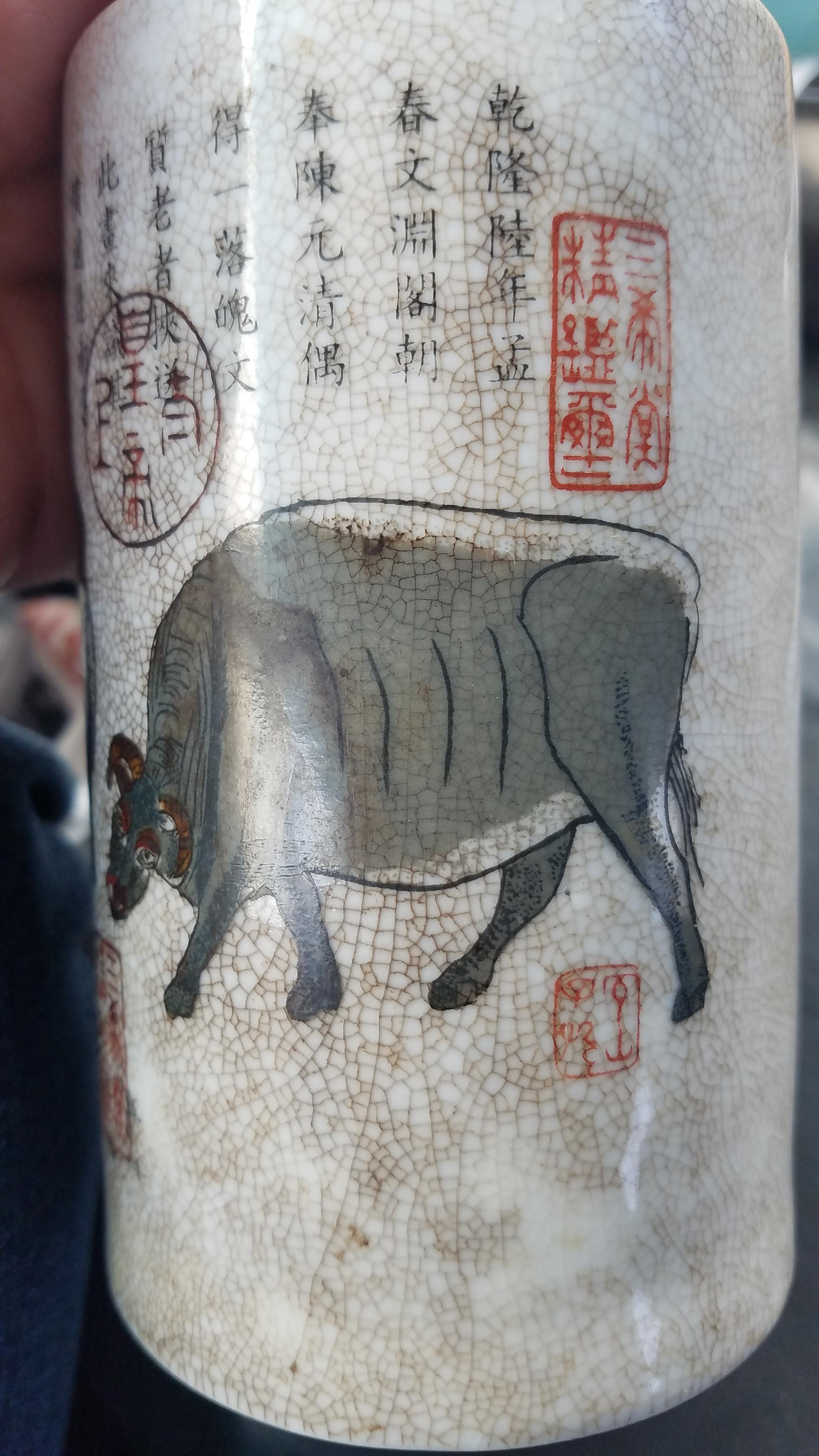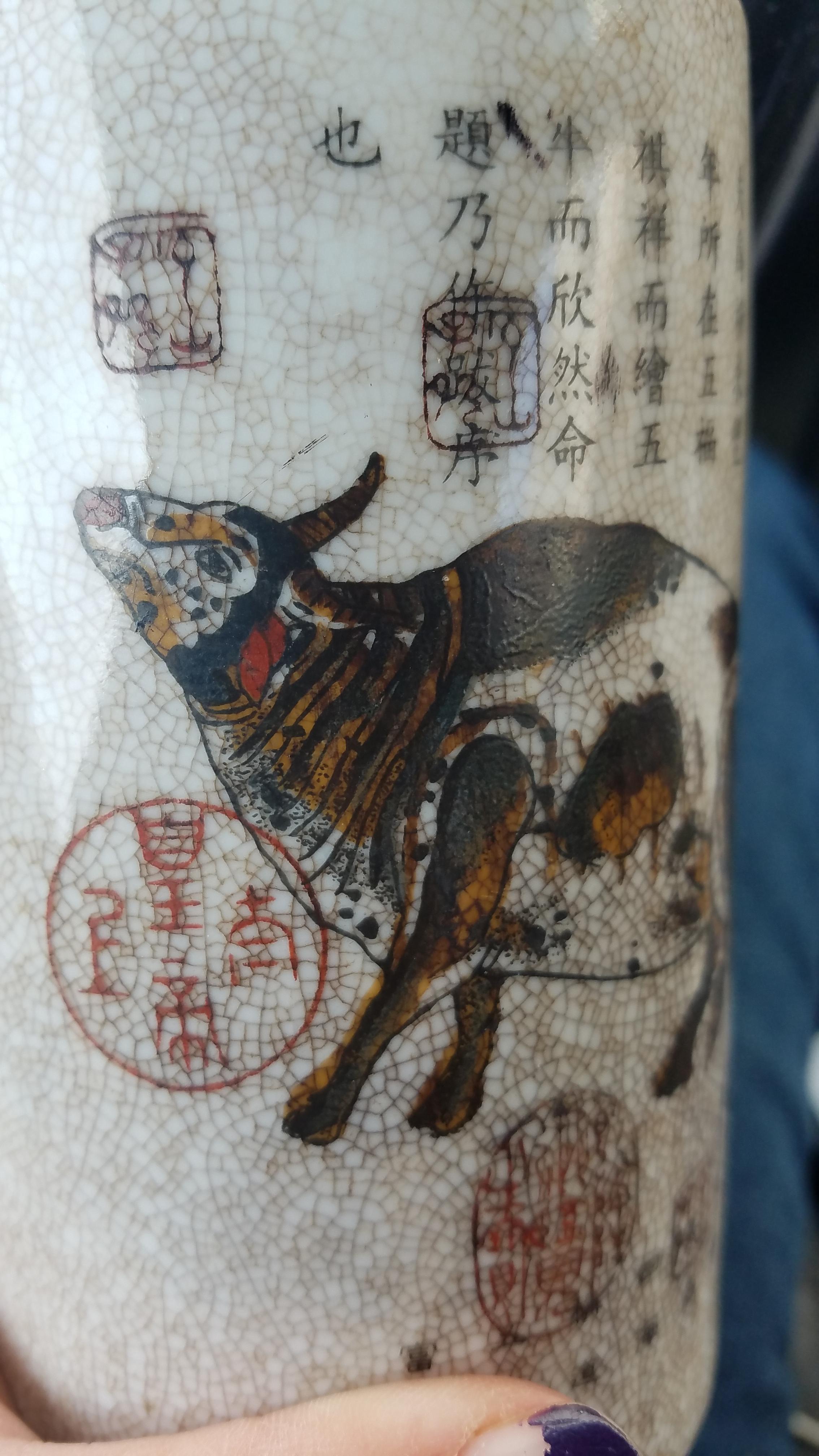 This thing caught my eye in a local goodwill. It appears very old Chinese Taurus painting. About the size of a can of soda. Just wondering if I have something of value or just something pretty to look at.