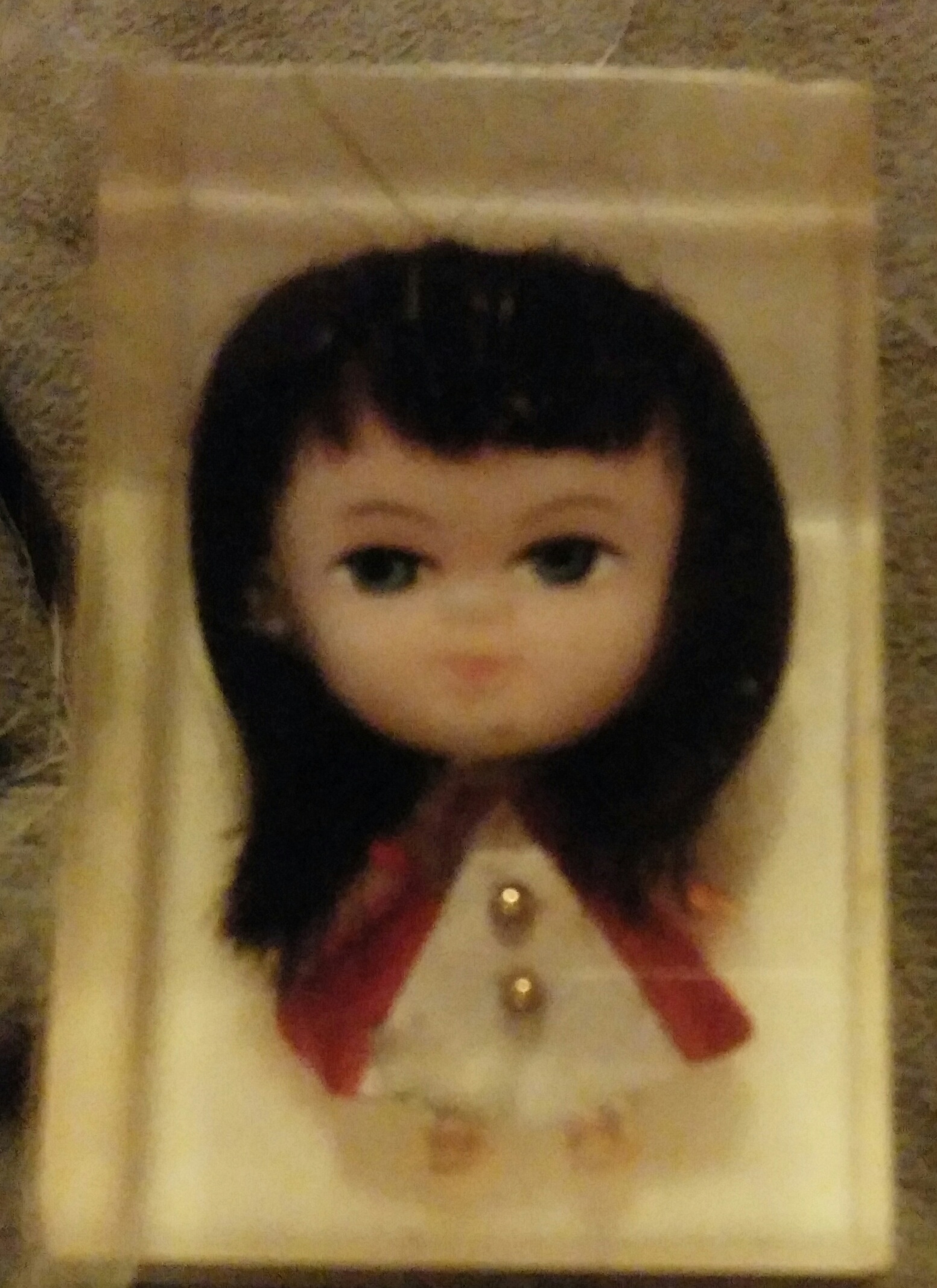A small doll incased in glass or acrylic