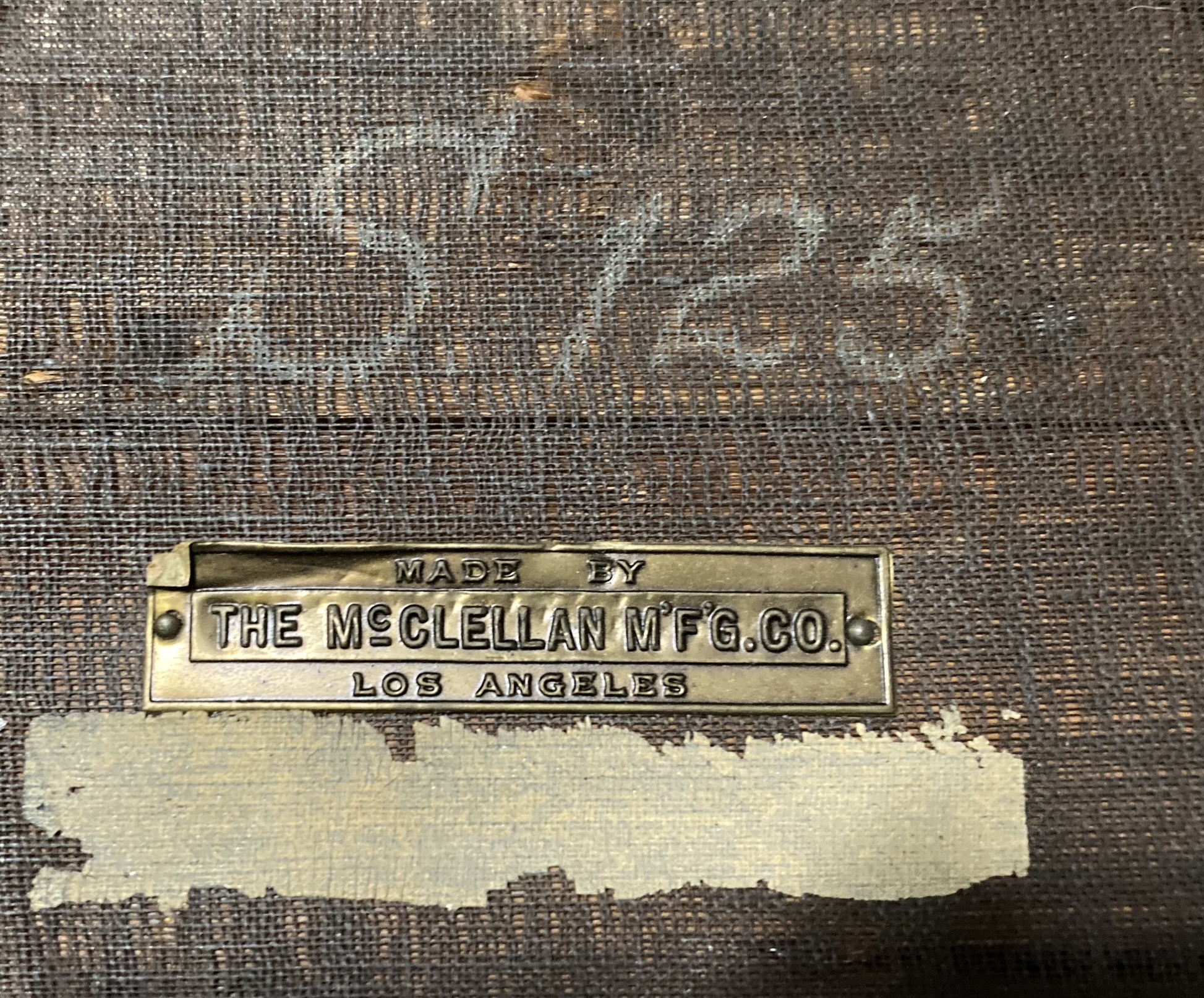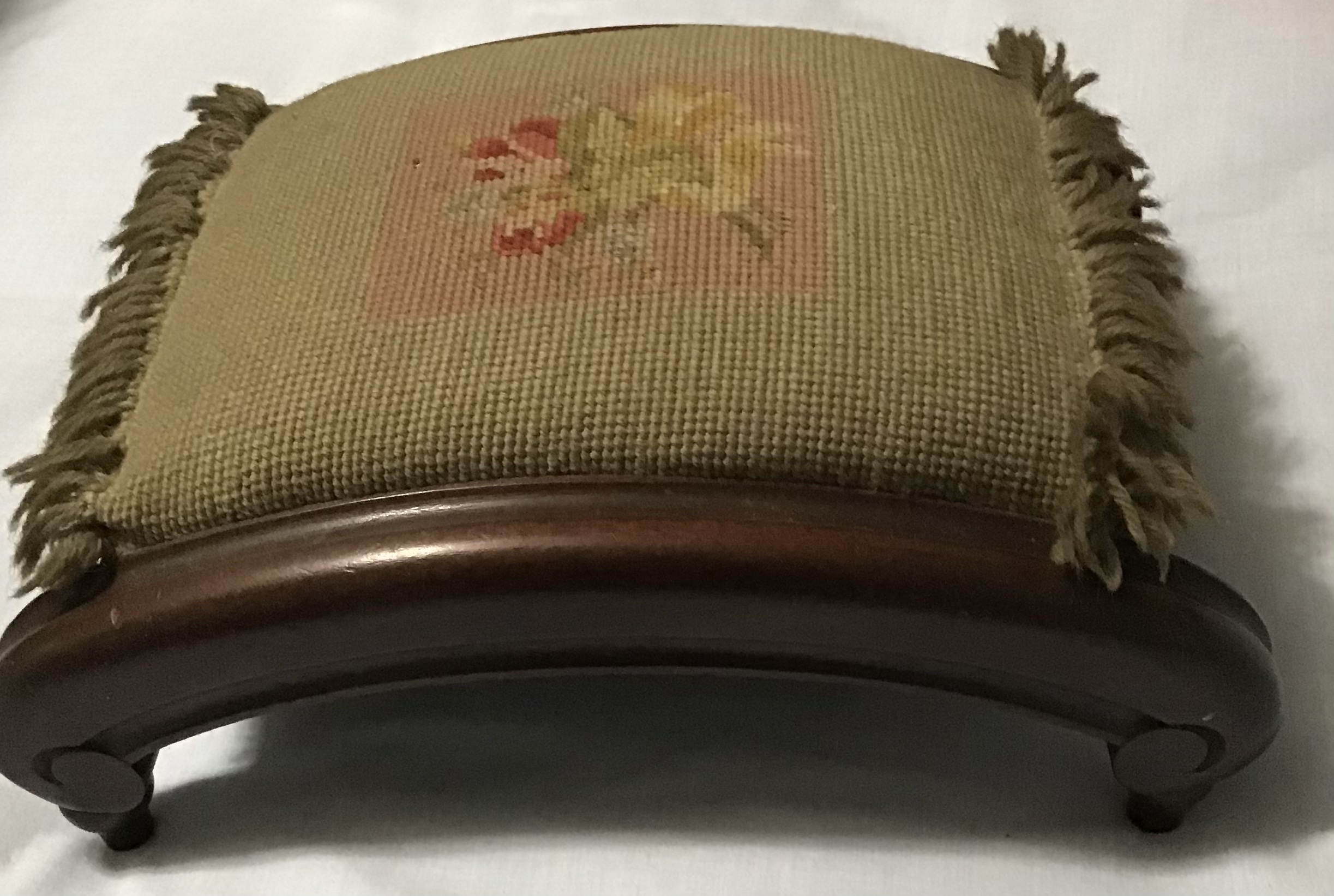 Small tapestry footstool made by The McClellan Mfg. Co. of Los Angeles
