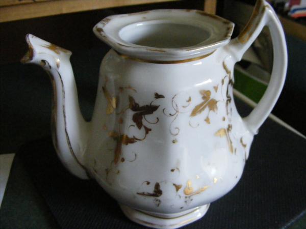 Small Gold leaf & Vine porcelain tea pot incised W R