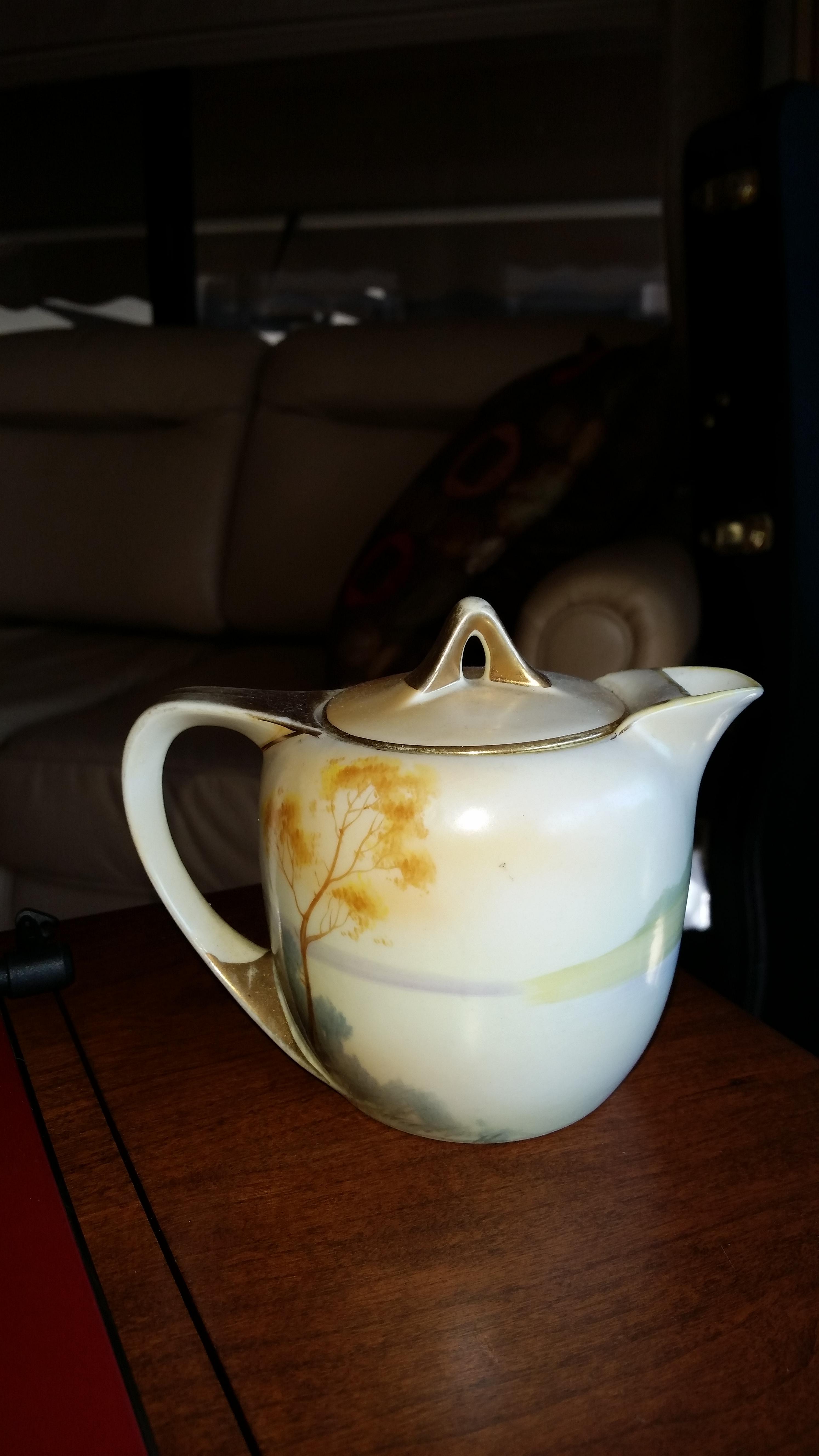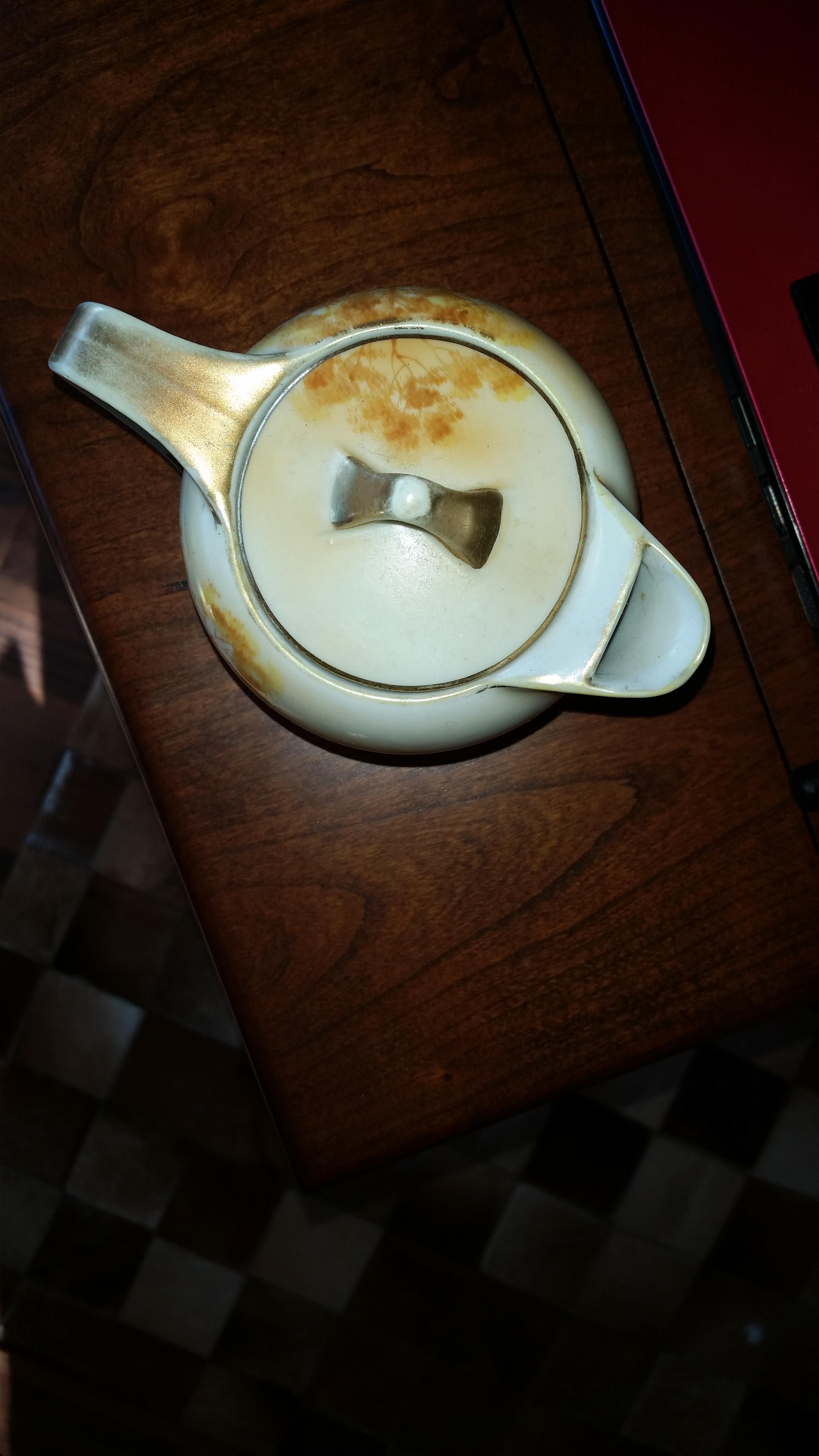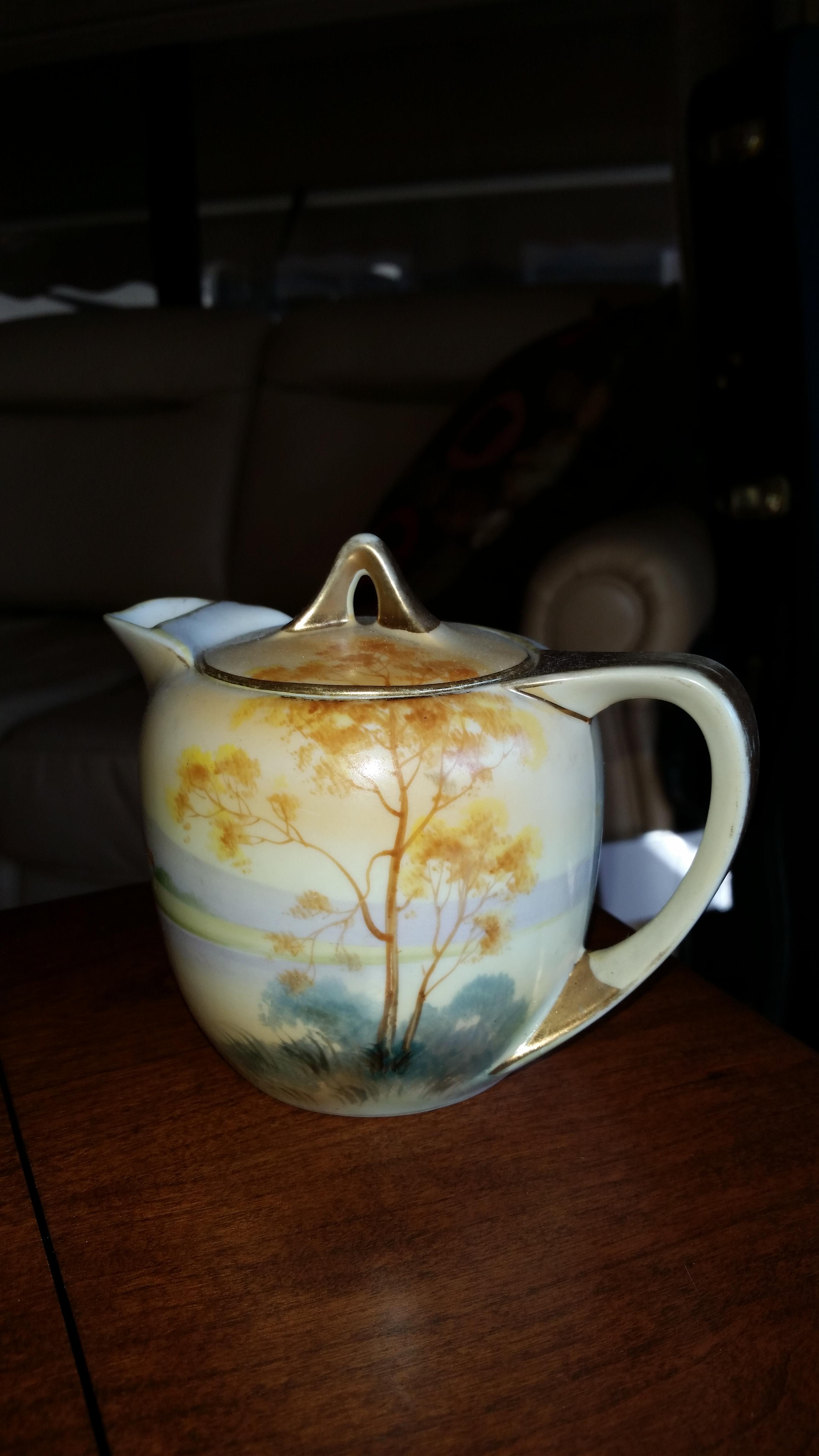This was a gift. It says Nippon Hand Painted on the bottom. The painting on the lid and pot line up. I really don't know anything ele about this item except that I love it.