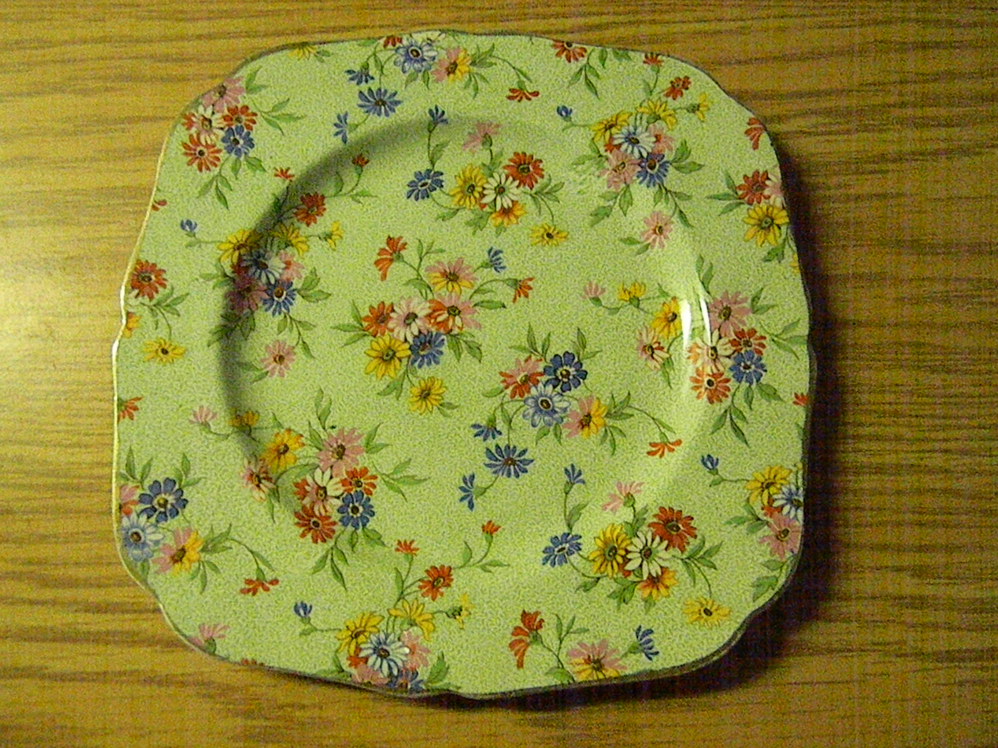 Chintz ware like this was very popular in the 80's and 90's, but demand and values have declined since then a great deal. A plate like this we'd retail for about $20.00.