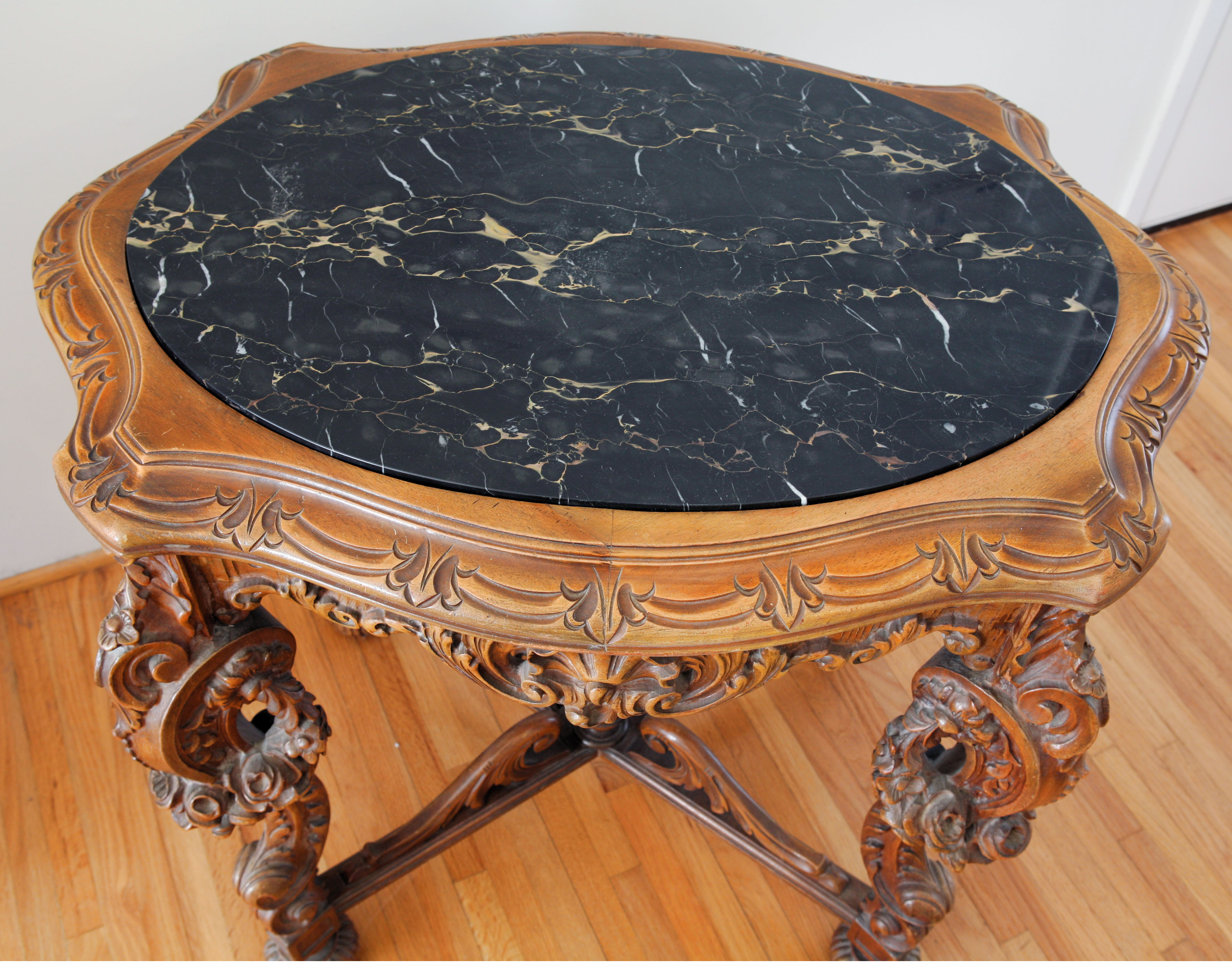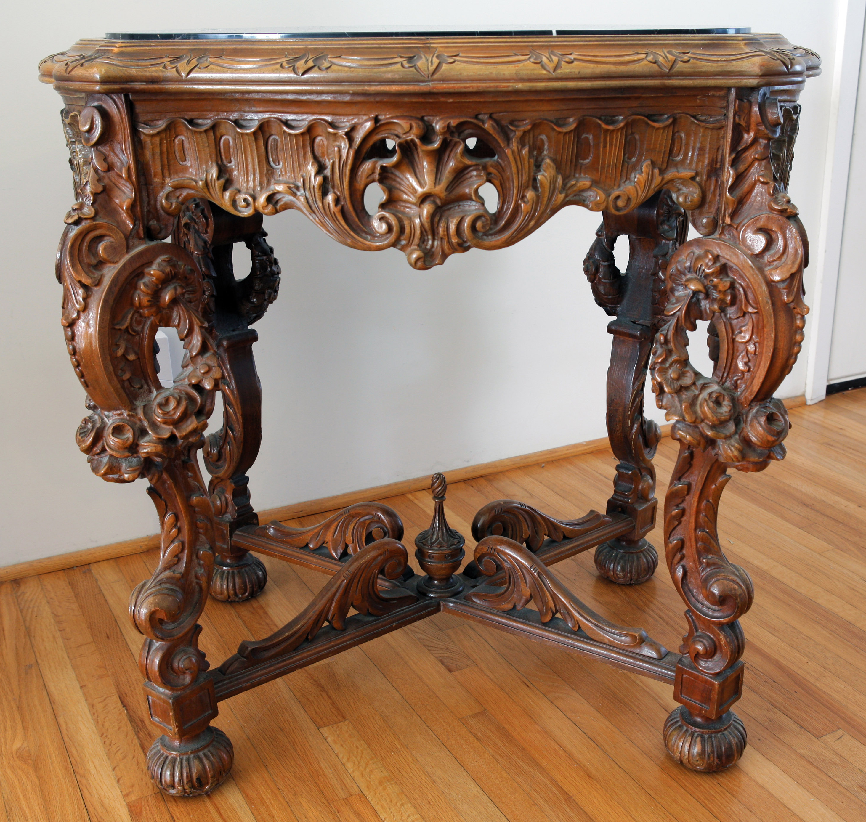 This is a small end table with a marble top. I do not know the year, origin, or anything else about it; only that it has been in the family for generations. It is in flawless condition. It is very heavy.