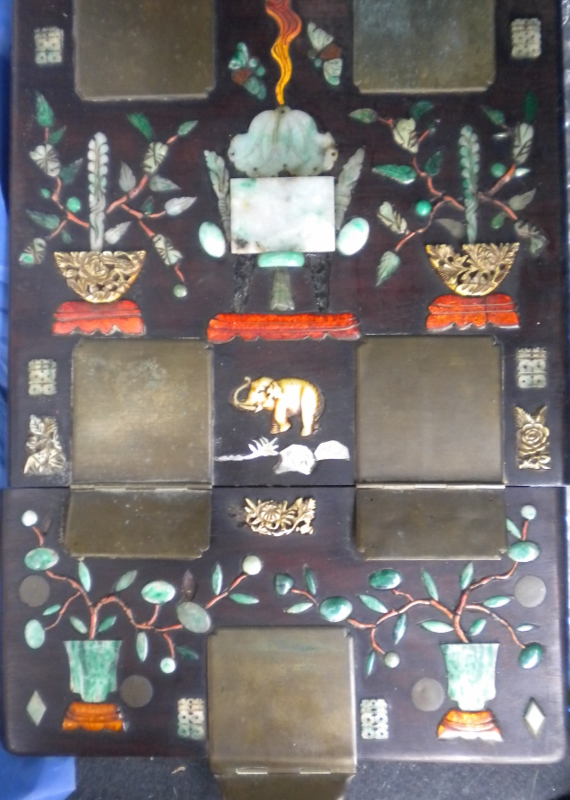 Bought this at estate sale. it was in pieces. doubt it is complete. has mirror on revese side of largest part. Would like to know history / what is it and what inlays are.