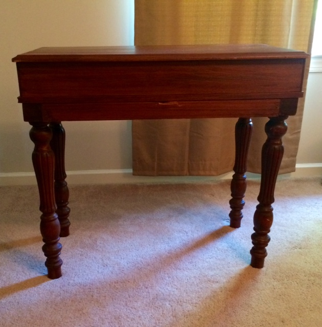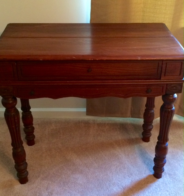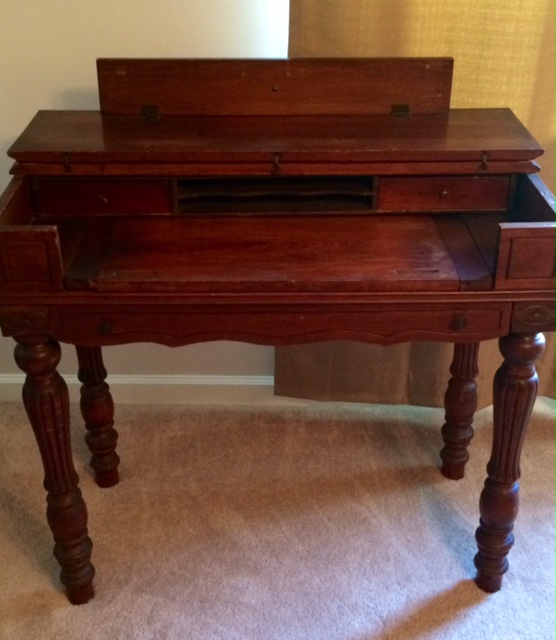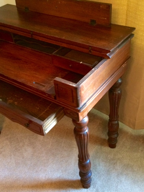 I acquired a small writing table approx 36 in long, 20 in wide and 32 in tall.I am guessing early to mid 1900's.