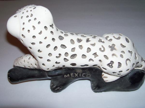 There are no visible makers marks besides mexico scratched into the back of the black tree limb that the Leopard is sitting on.