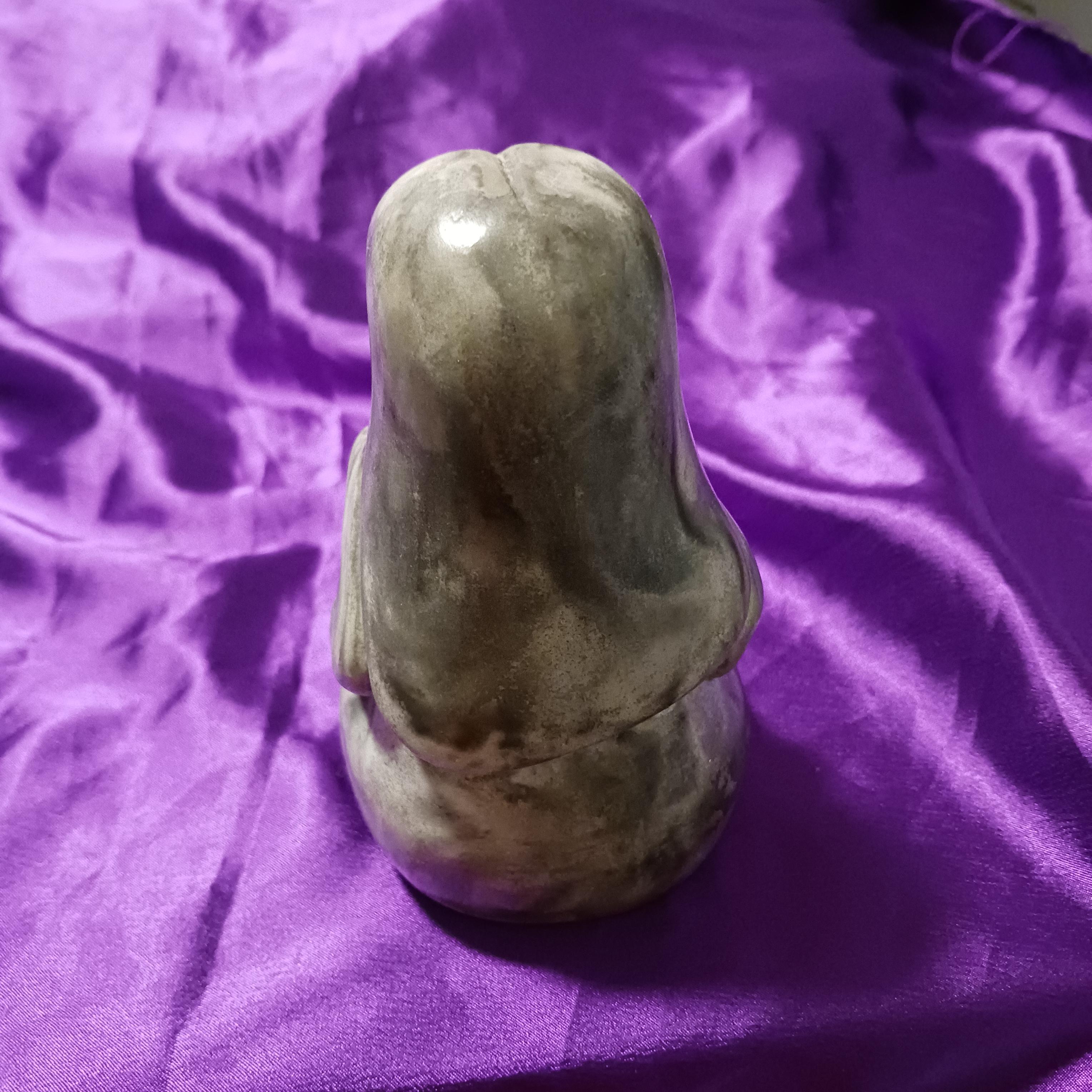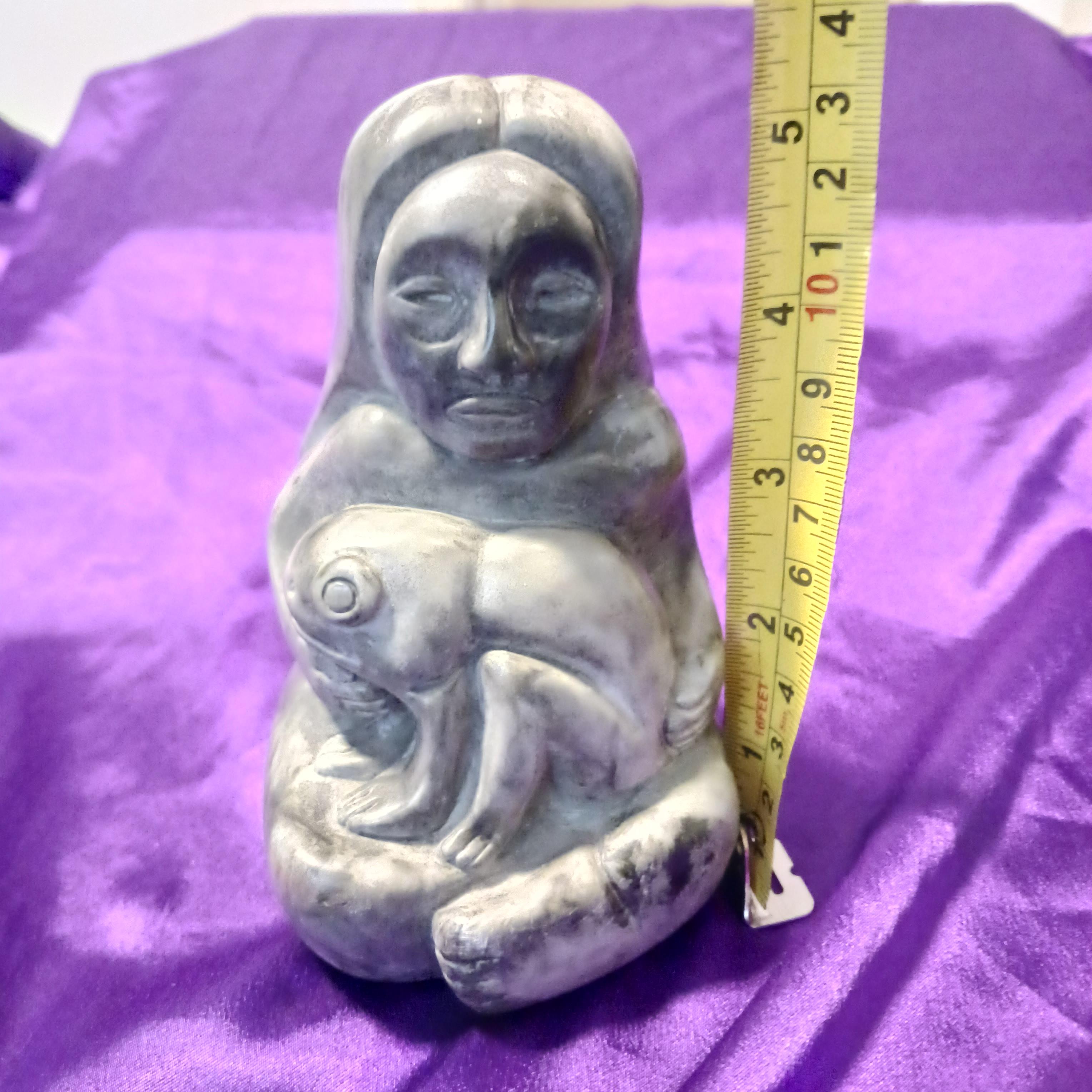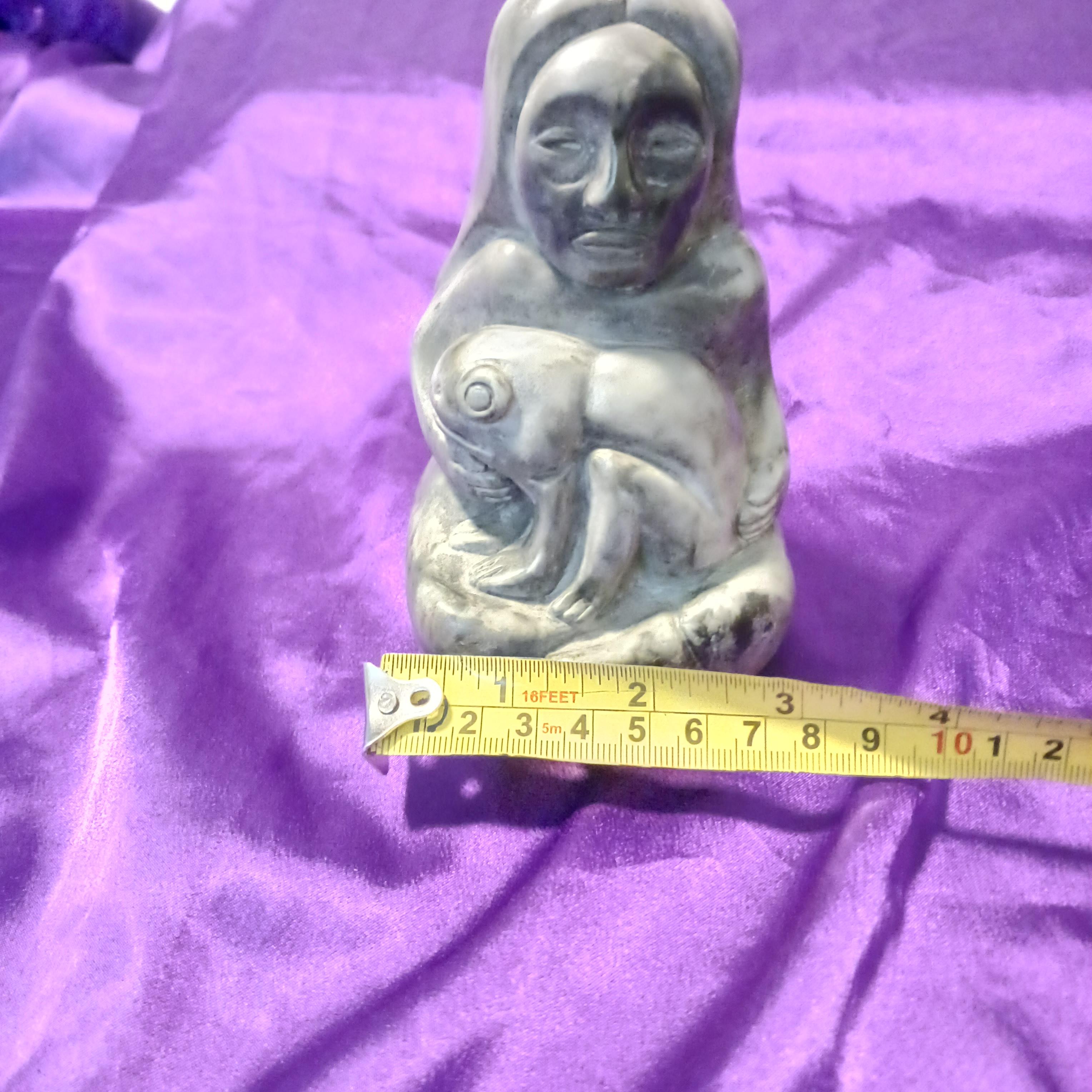 Soapstone Craving of the Volcano women and Frog by an unknown artist. This figure is based on one of the legends of the Tlingit Tribe of the Volcano women's only child.