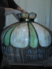 solid bronze lamp with a girl for the base large with very large stained glass shade