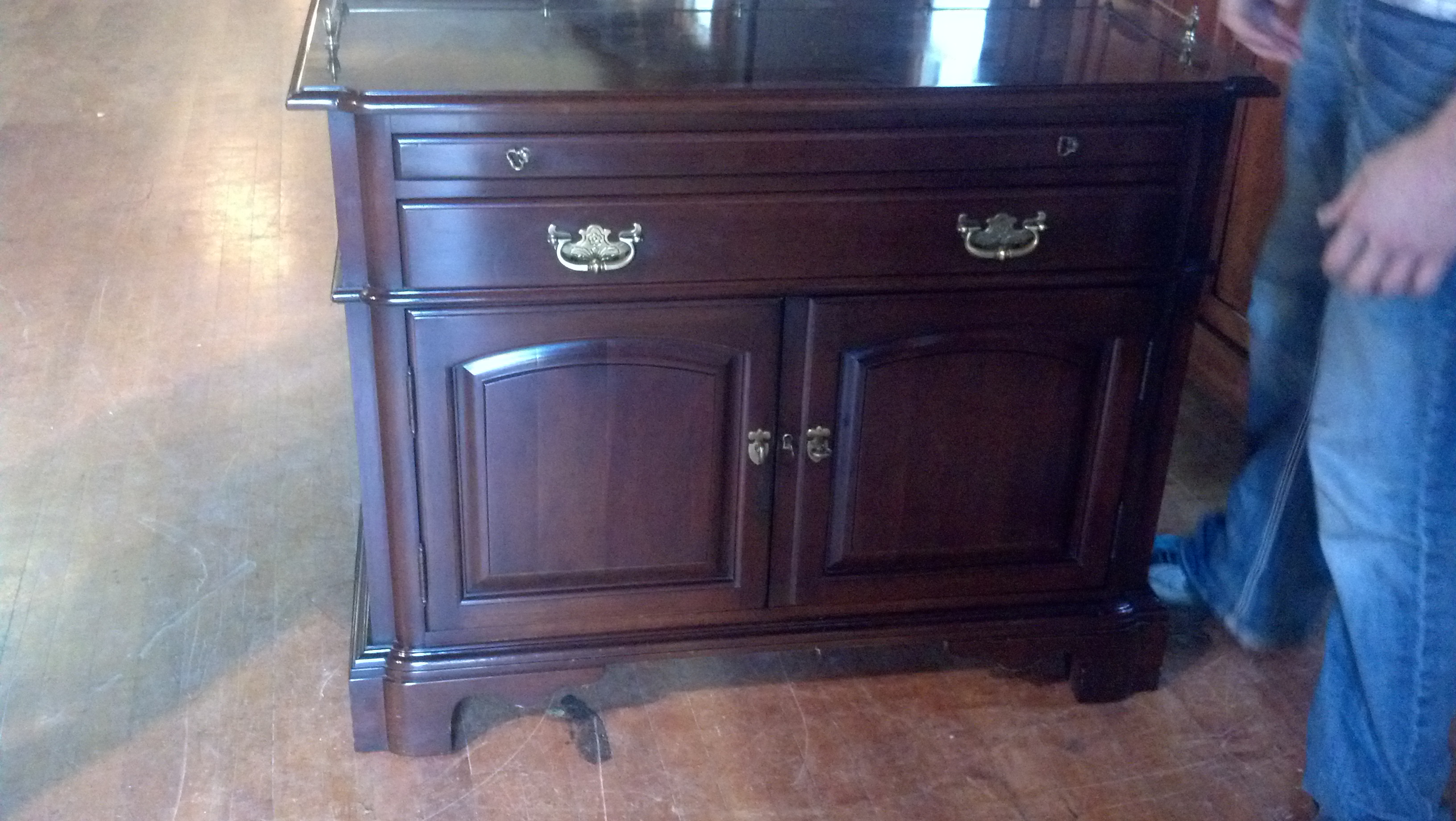 I have a dinning set. All are marked Monitor Furniture Co. All are solid cherry wood. I do have the original catalog to them but it does not state prices. The first item is a dinning table with six chairs in which two are captain chairs. The table is in good condition because of some scratches on the feet of the chairs. The table has two leaves with it. The next item is the matching serving table that is in great condition, hardly and imperfections and comes with the key to lock the bottom cabinet. And that carbonate is a slim drawer. It also has a brass railing on the top. The last item is. a china hutch . The hutch is two separate pieces the buffet table and the hutch. The hutch has 4 glass doors and glass shelves with cherry wood around the glass. It is a lighted hutch. There are four drawers and four cabinets. This piece is in great condition. I was wondering what the estimated value would be.