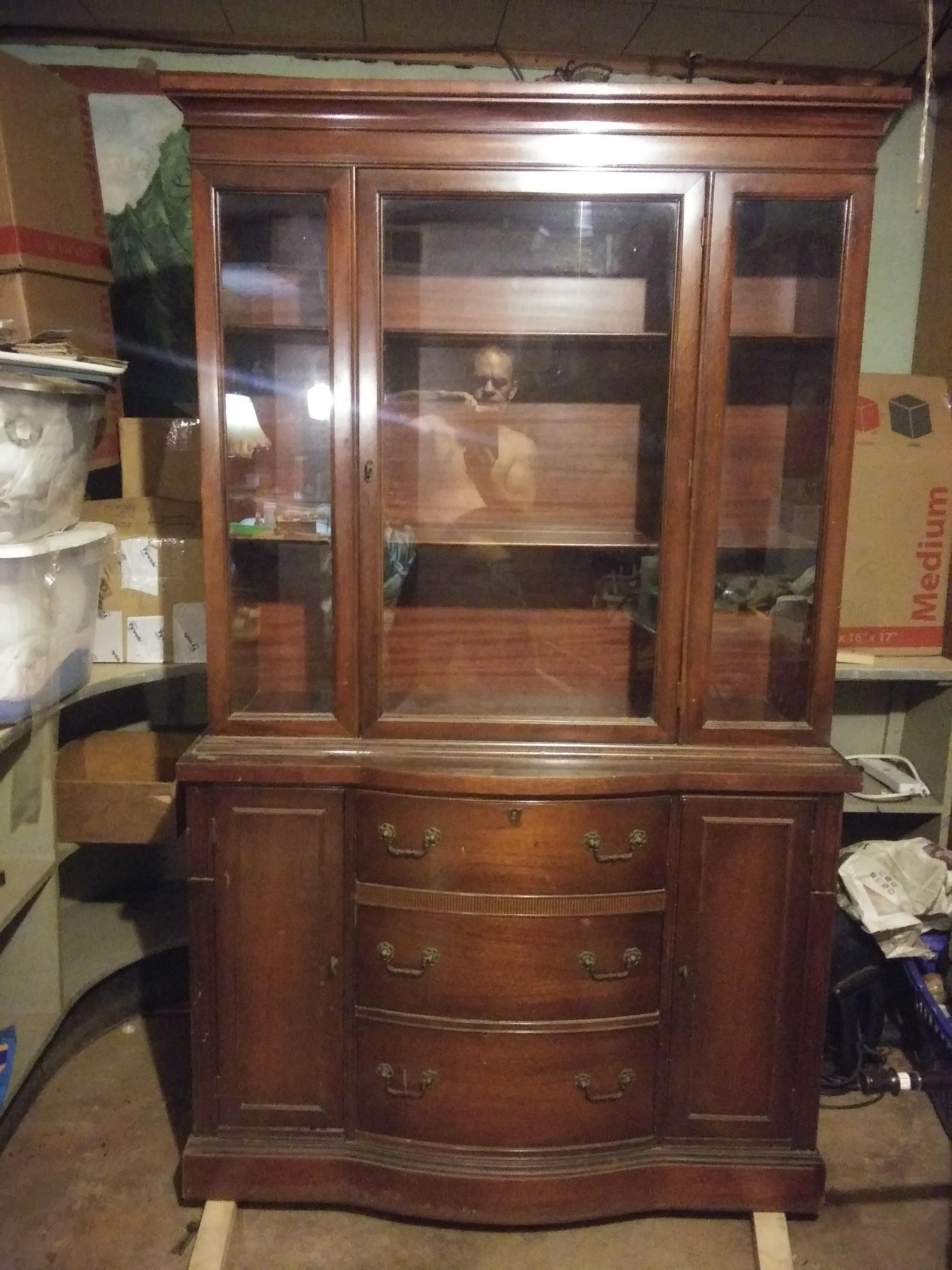 2 piece solid mahgonay china cabenit with bow front 3 drawer bottom.