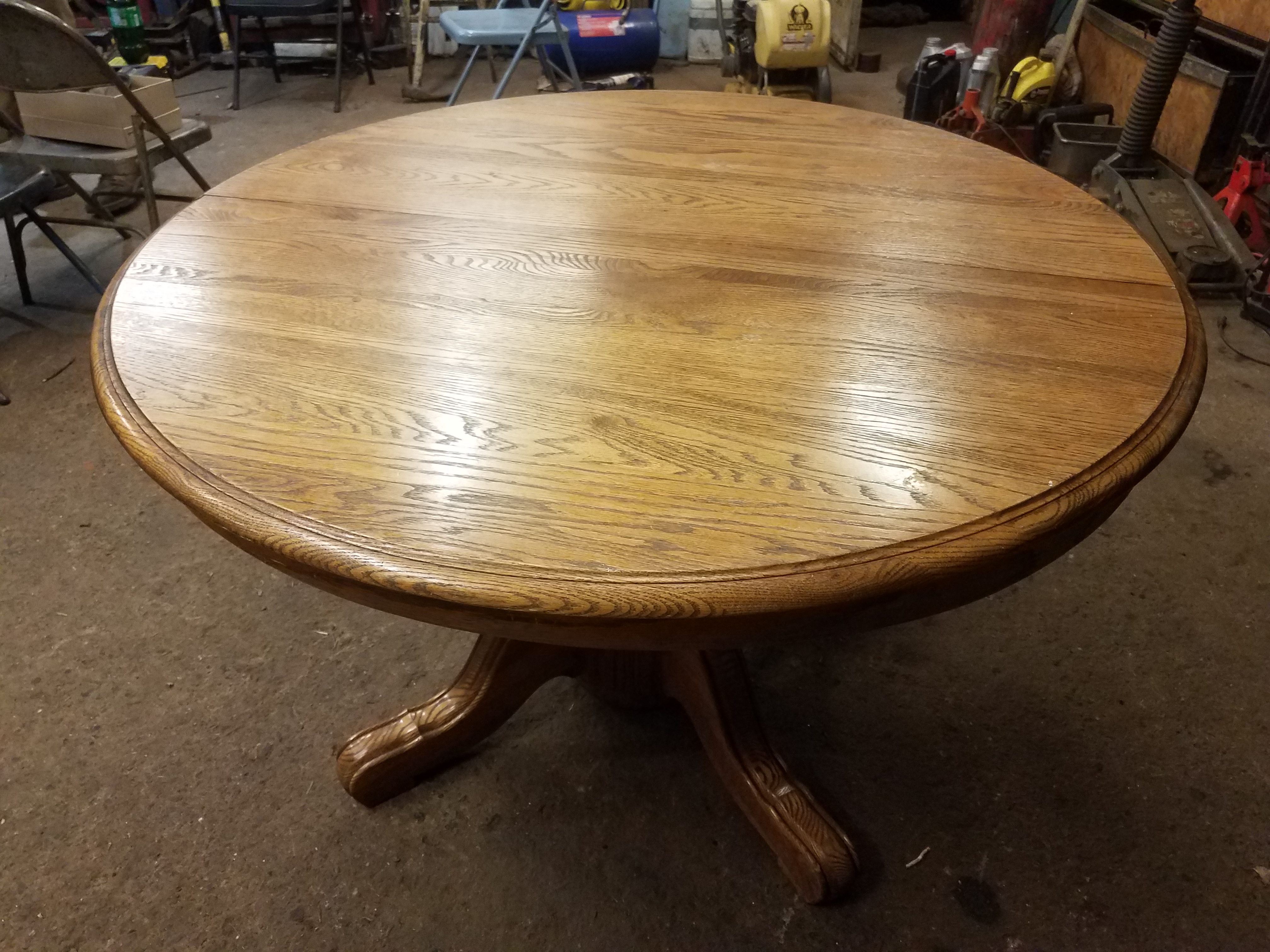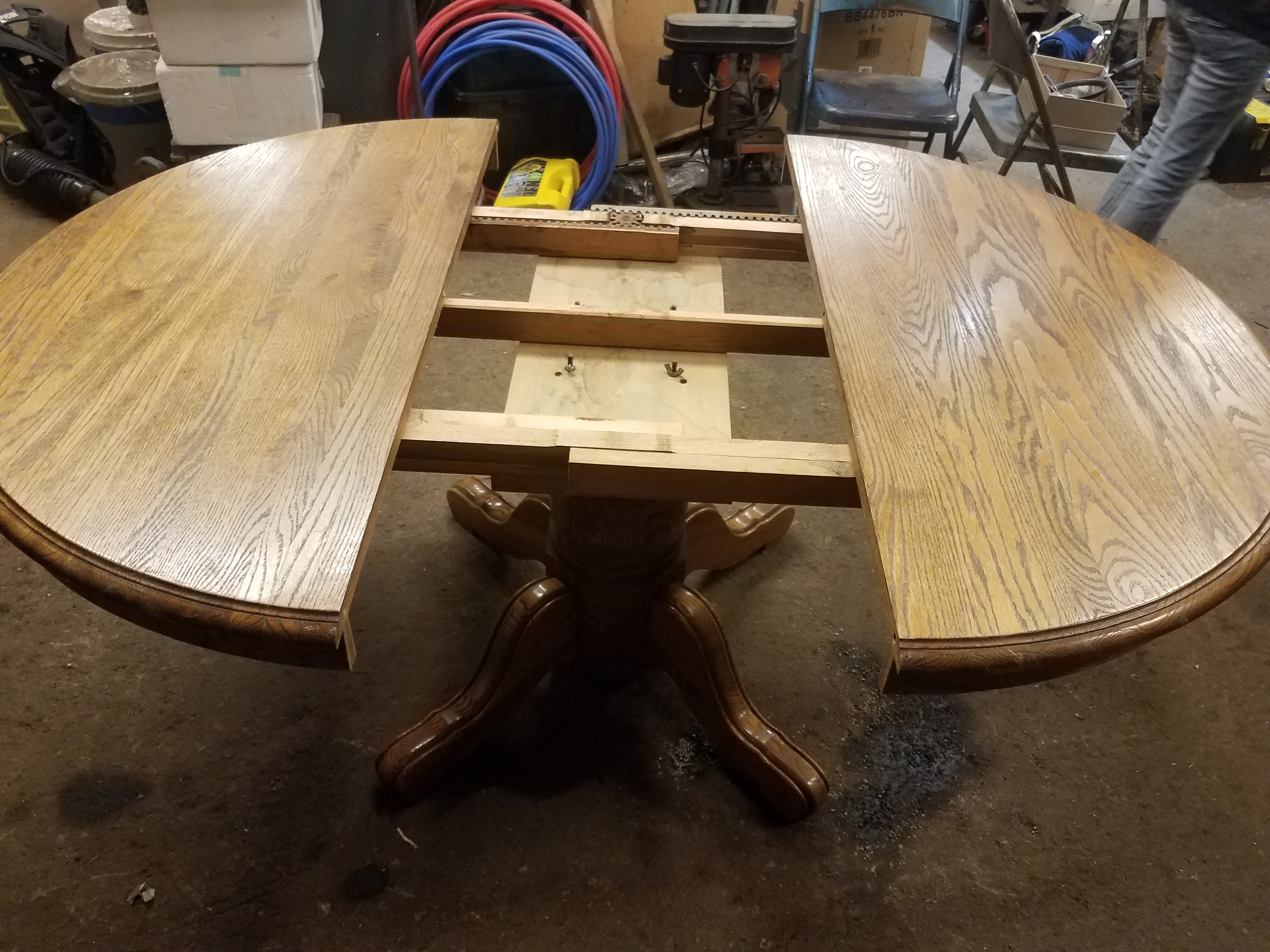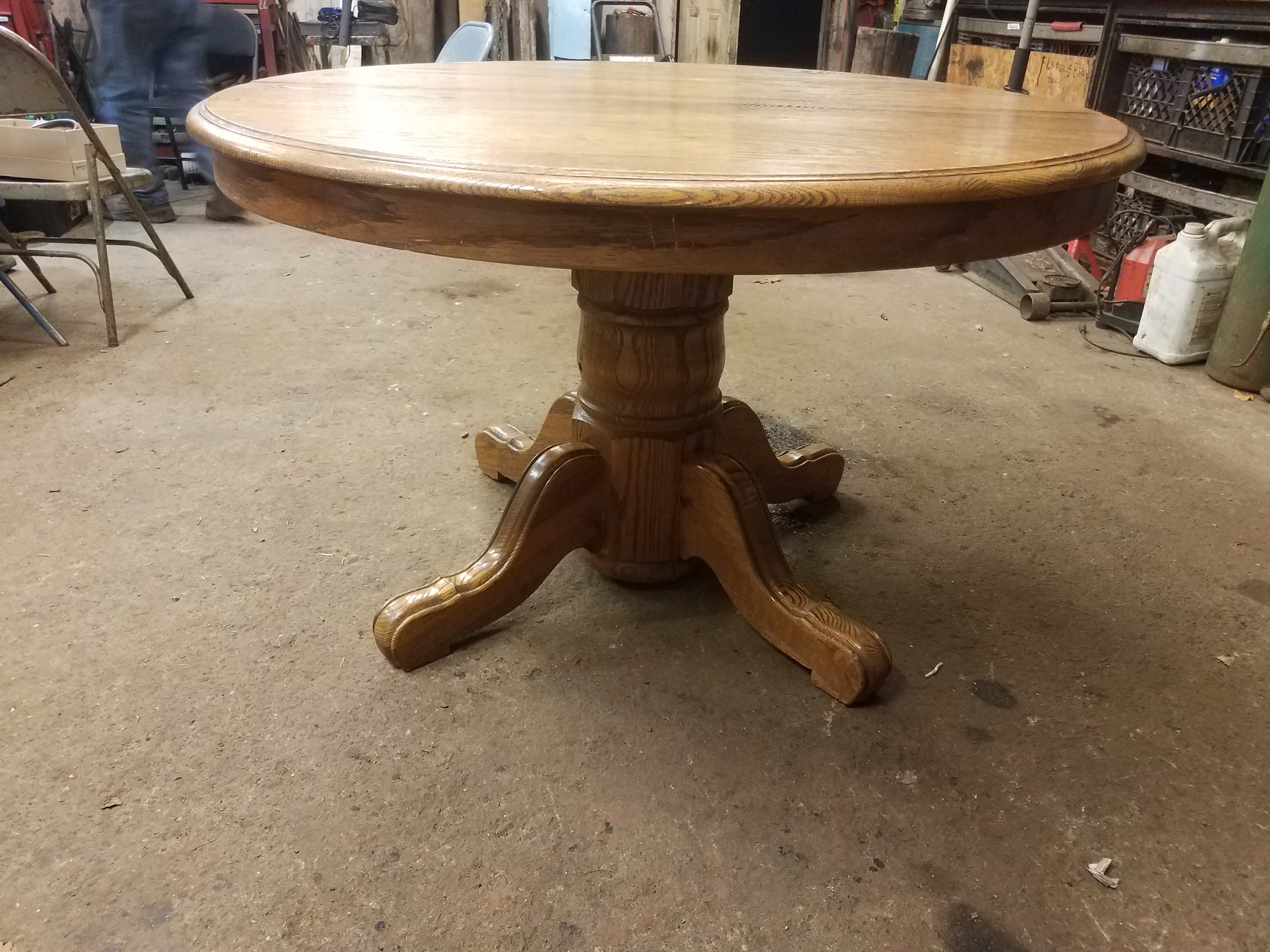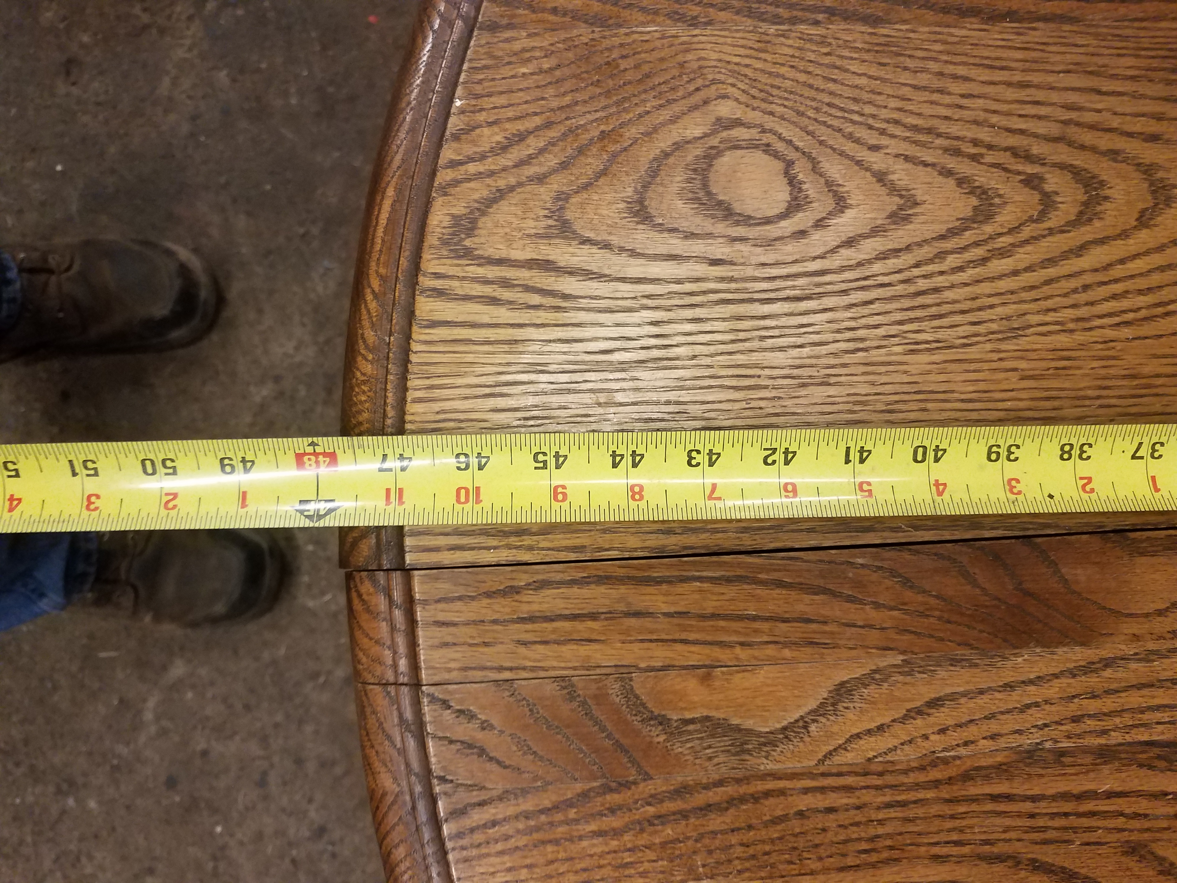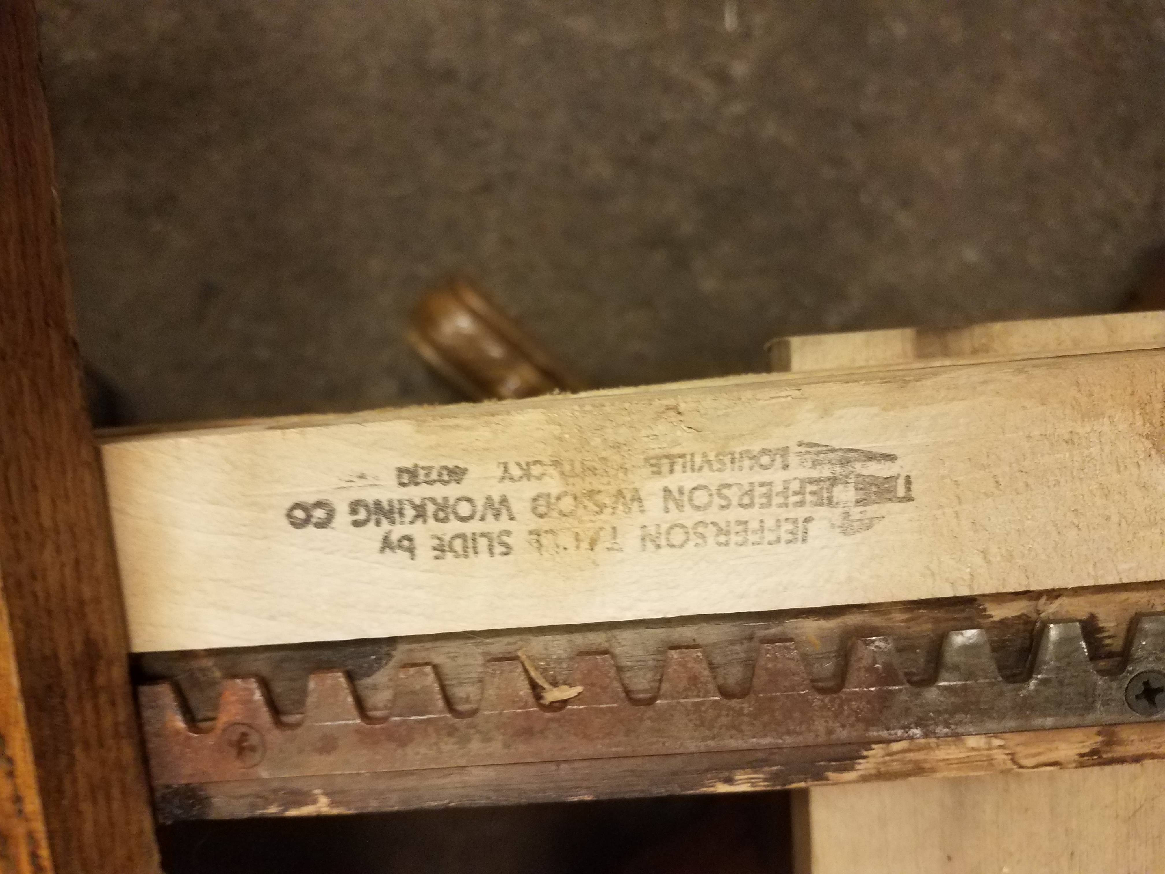 It has two stamps on it one reads "bent rims #120+1 jefferson woodworking company Louisville Kentucky" and the other "Mona Lisa Furniture inc." It is a very heavy solid oak table that opens up to put a leaf in. (The leaf is missing) I bought it from a friend. It is lightly used with some small knicks and scratches on the surface.
